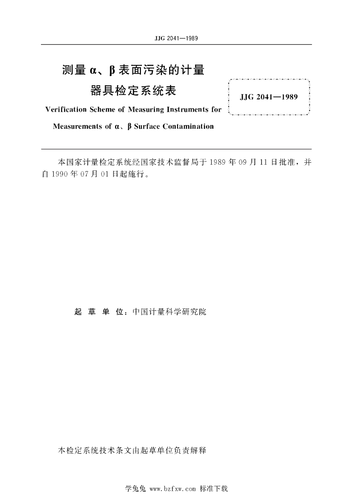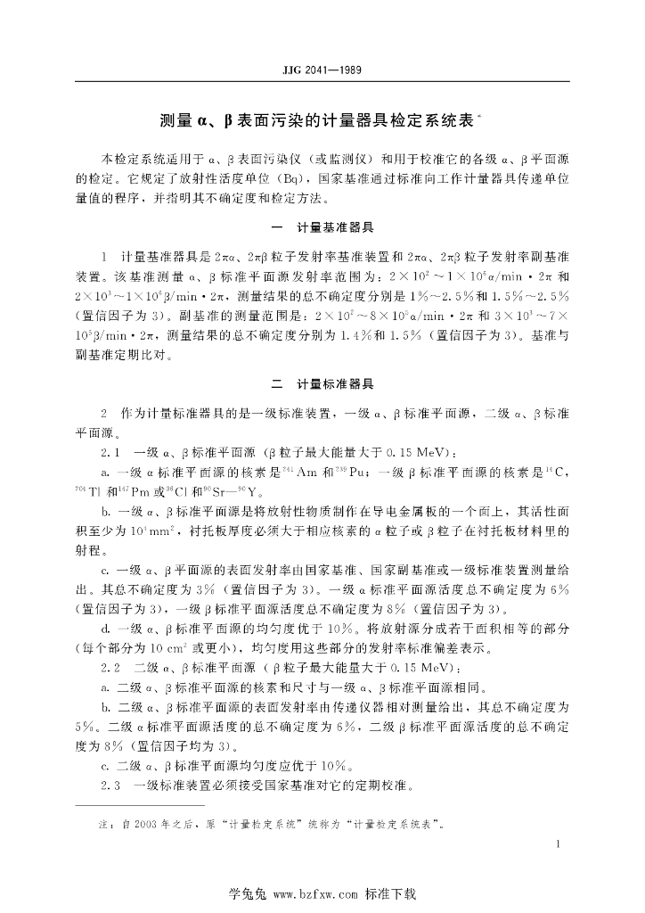 JJG 2041-1989 测量α、β表面污染的计量器具