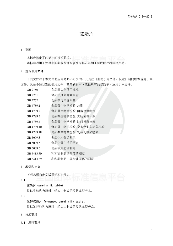 T/CAAA 013-2019 驼奶片