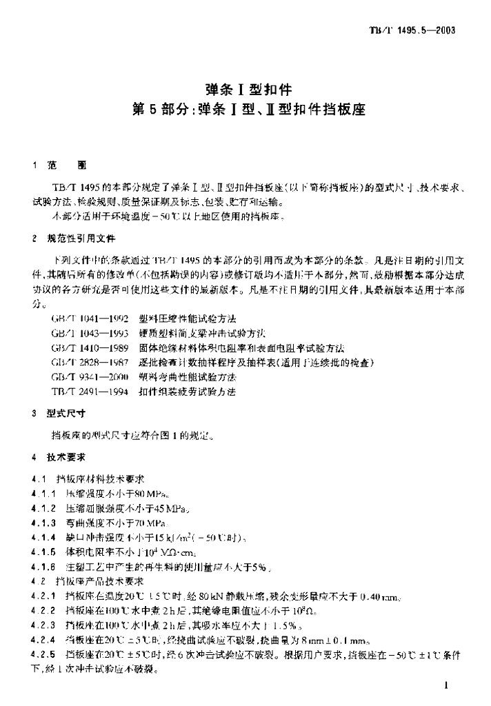 TB/T 1495.5-2003 弹条Ⅰ型扣件 第5部分:弹跳Ⅰ型、Ⅱ型扣件挡板座