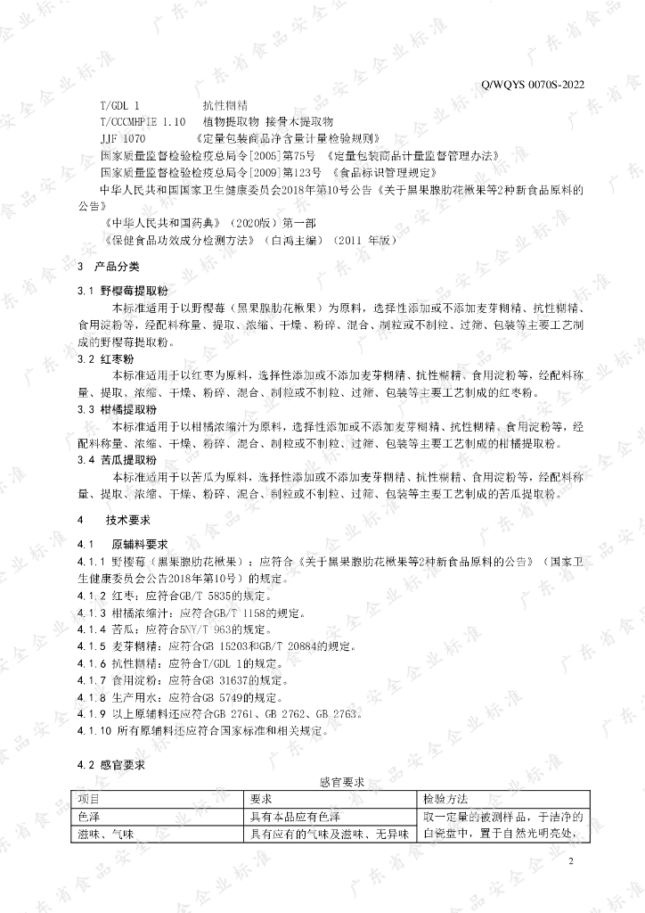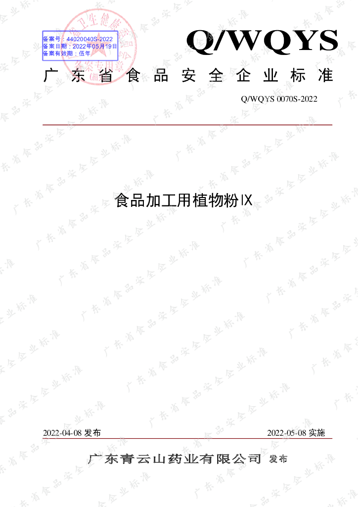 Q/WQYS 0070S-2022 食品加工用植物粉Ⅸ