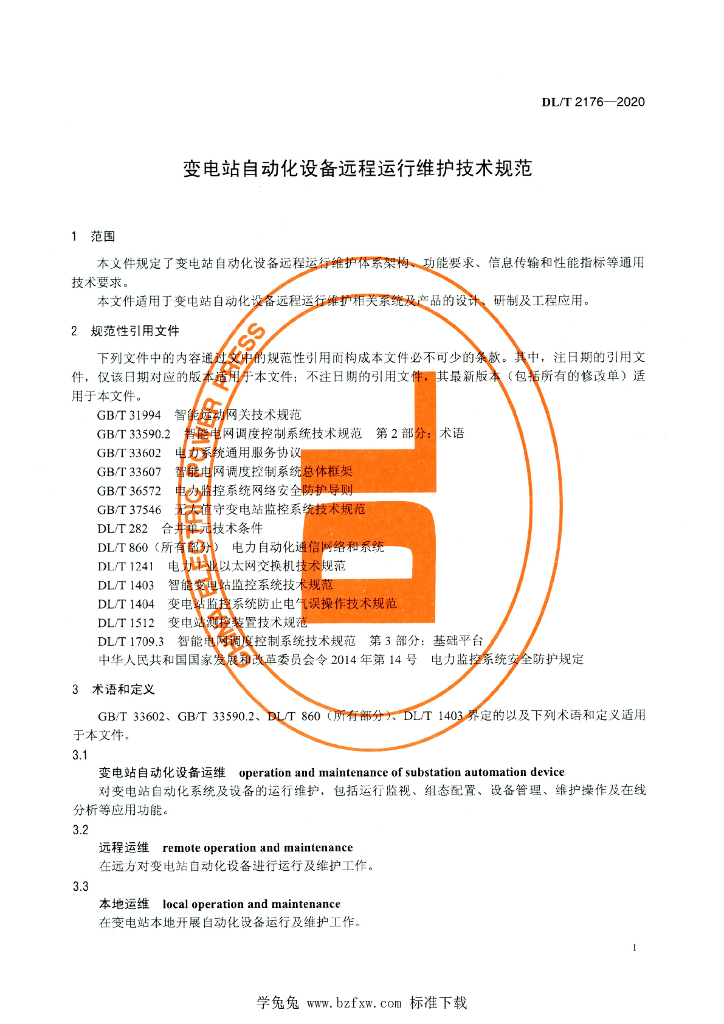 DL/T 2176-2020 变电站自动化设备远程运行维护技术规范