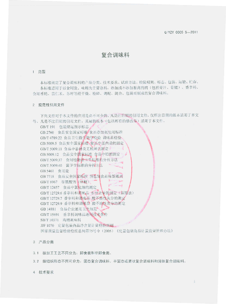 Q/YZY 0005S-2011 复合调味料