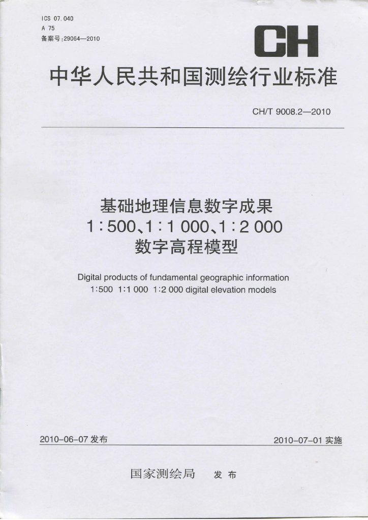 CH/T 9008.2-2010 基础地理信息数字成果1:500 1:1 000 1:2 000数字高程模型