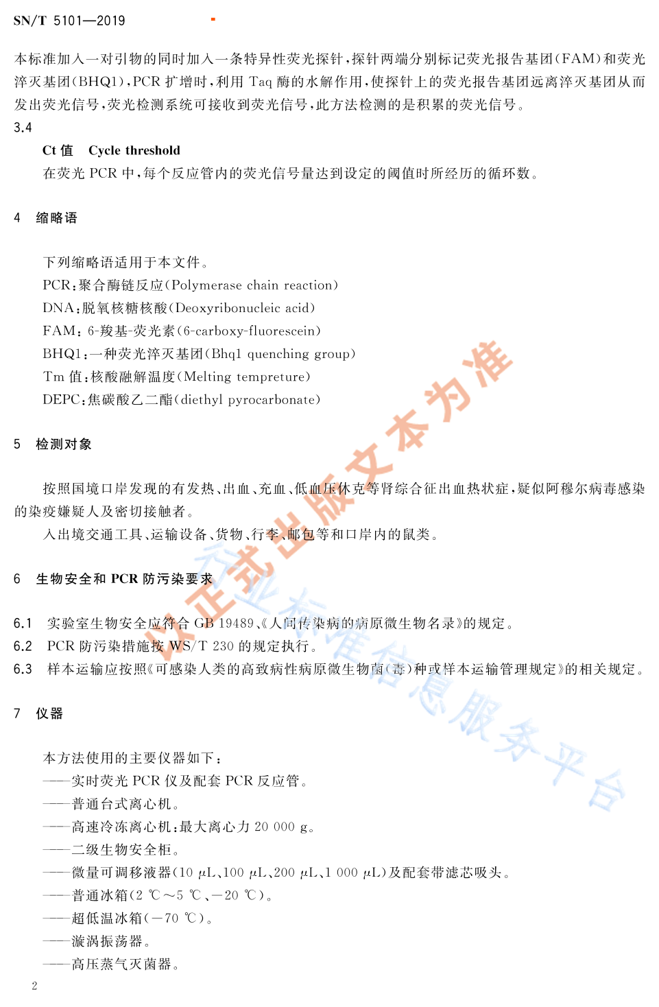 SN/T 5101-2019 国境口岸阿穆尔病毒实时荧光RT-PCR检测方法