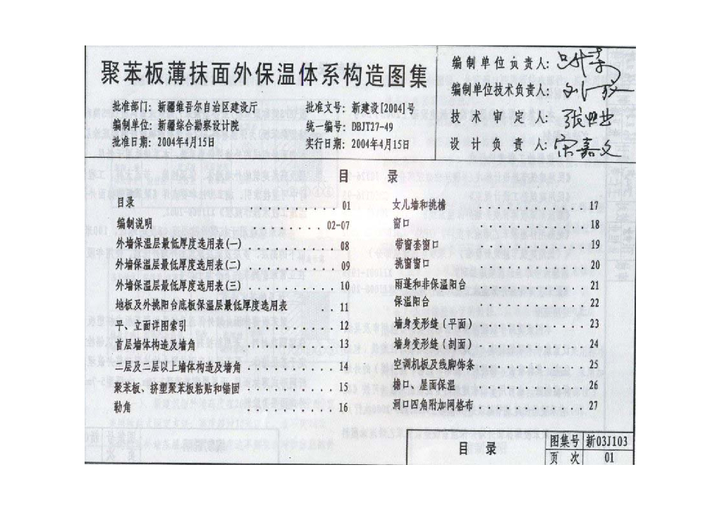 新03J103 聚苯板薄抹面外保温体系构造图集
