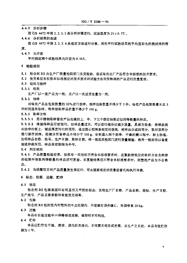 HG/T 2188-1991 橡胶用胶粘剂 RS