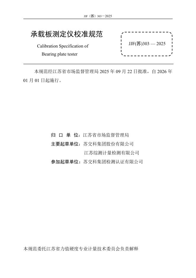 JJF(苏)303-2025 承载板测定仪校准规范
