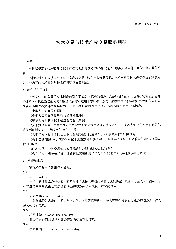 DB32/T 1244-2008 技术交易与技术产权交易服务规范