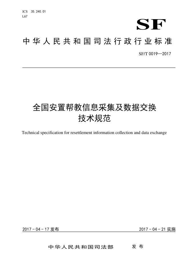 SF/T 0019-2017 全国安置帮教信息采集及数据交换技术规范