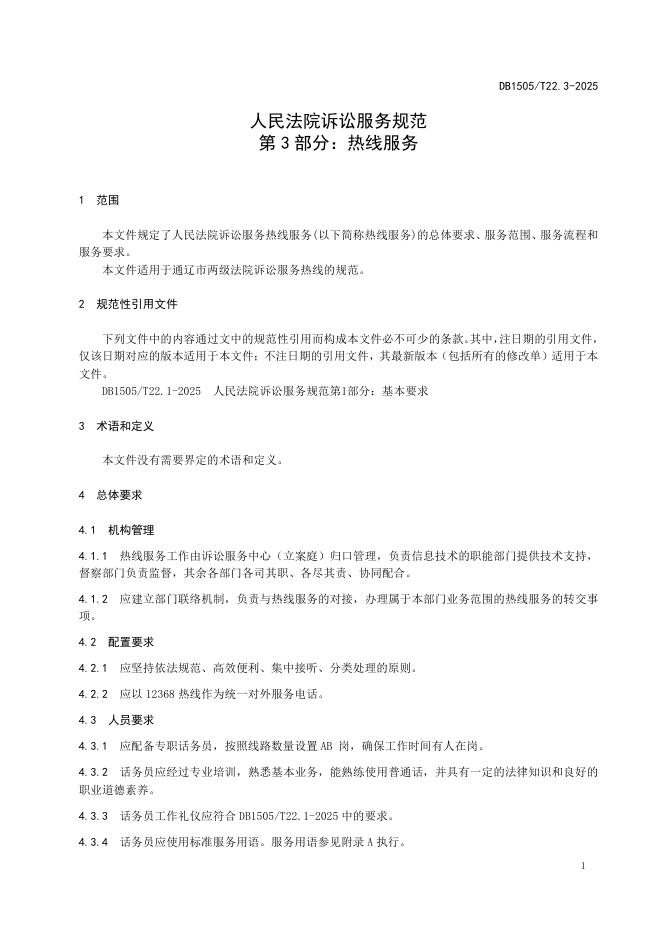 DB1505/T 22.3-2025 人民法院诉讼服务规范 第3部分:热线服务