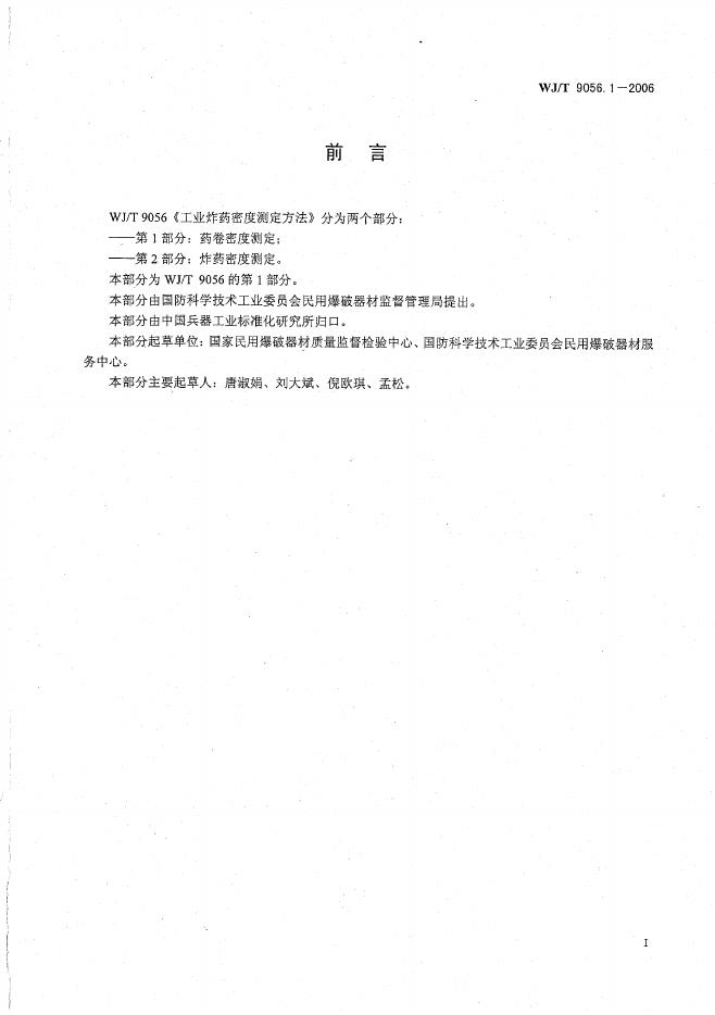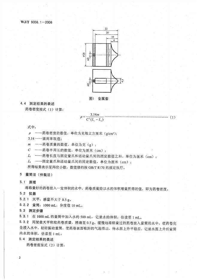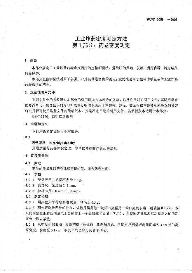 WJ/T 9056.1-2006 工业炸药密度测定方法 第1部分:药卷密度测定