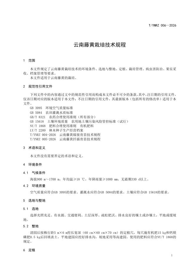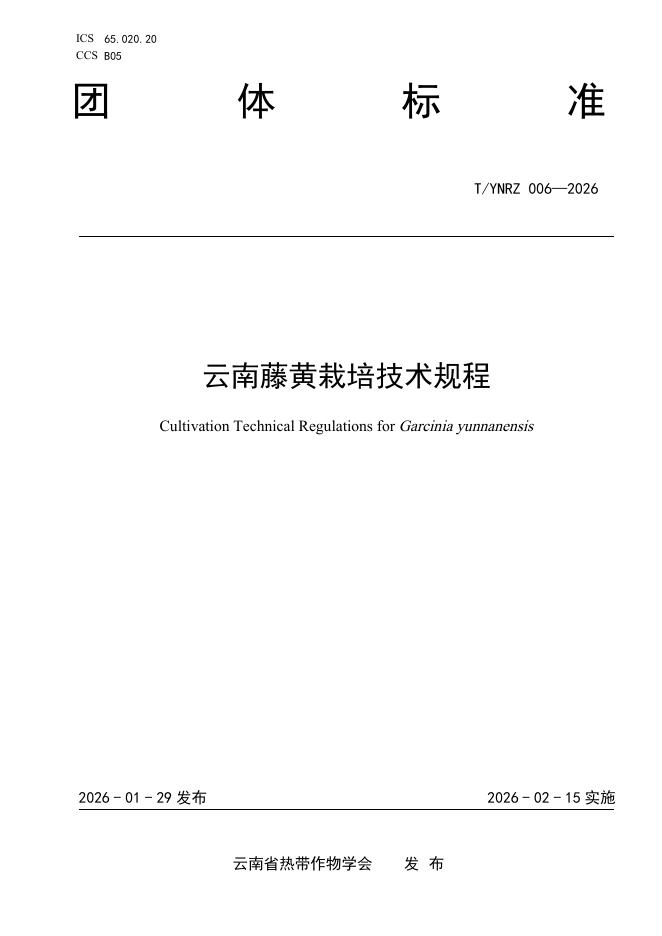 T/YNRZ 006-2026 云南藤黄栽培技术规程