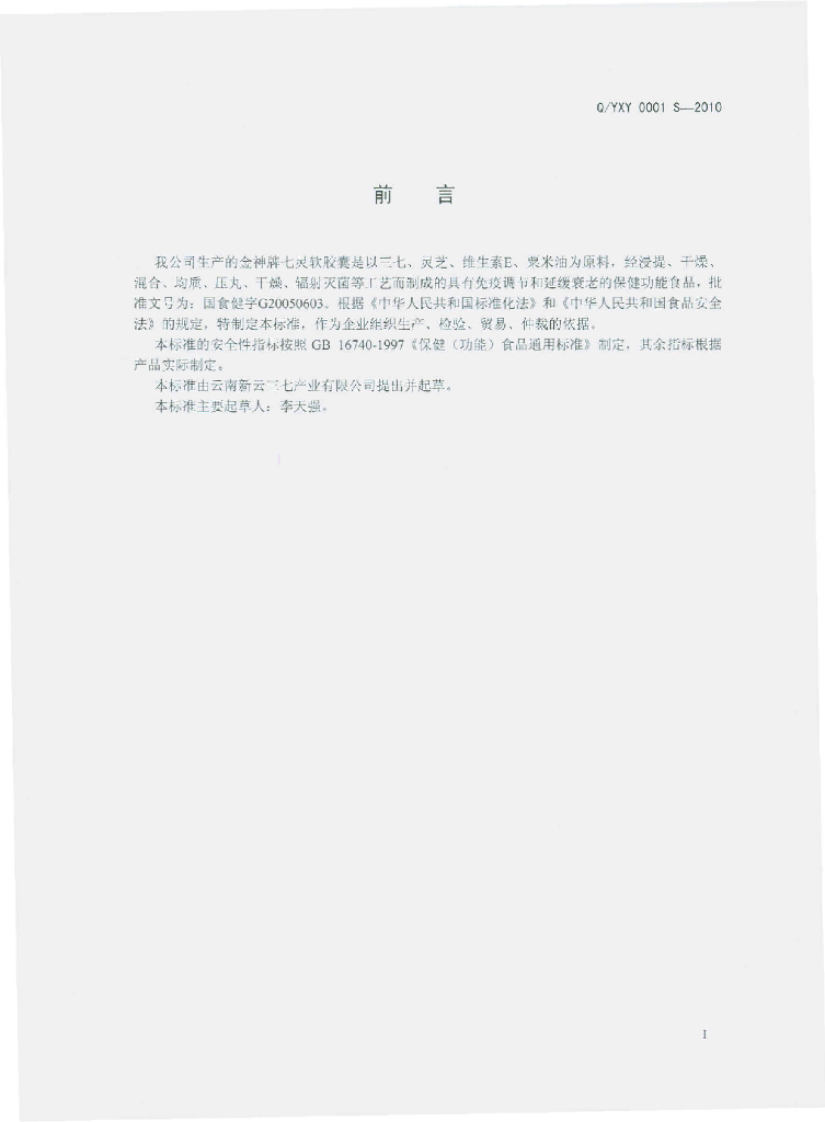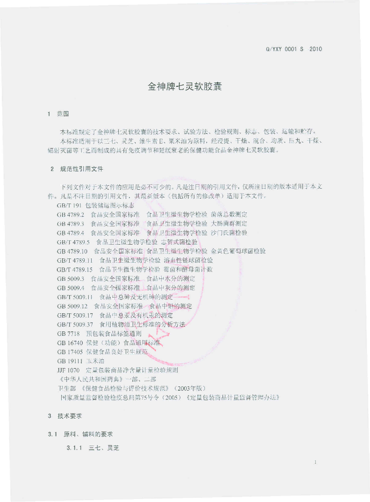 Q/YXY 0001S-2010 金神牌七灵软胶囊