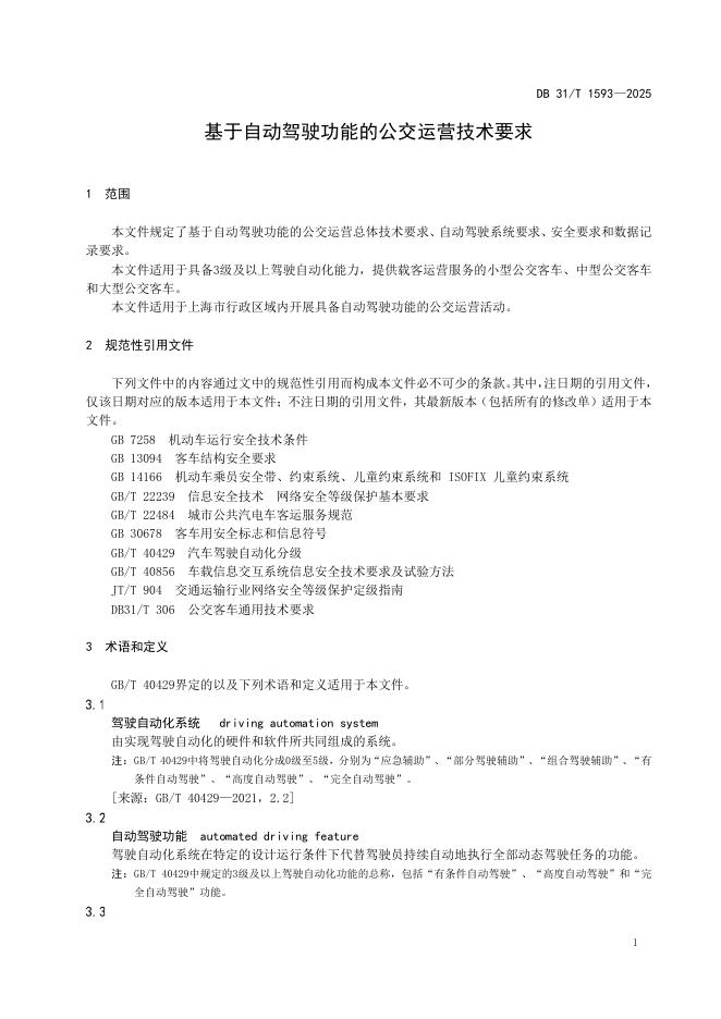 DB31/T 1593-2025 基于自动驾驶功能的公交运营技术要求