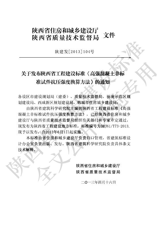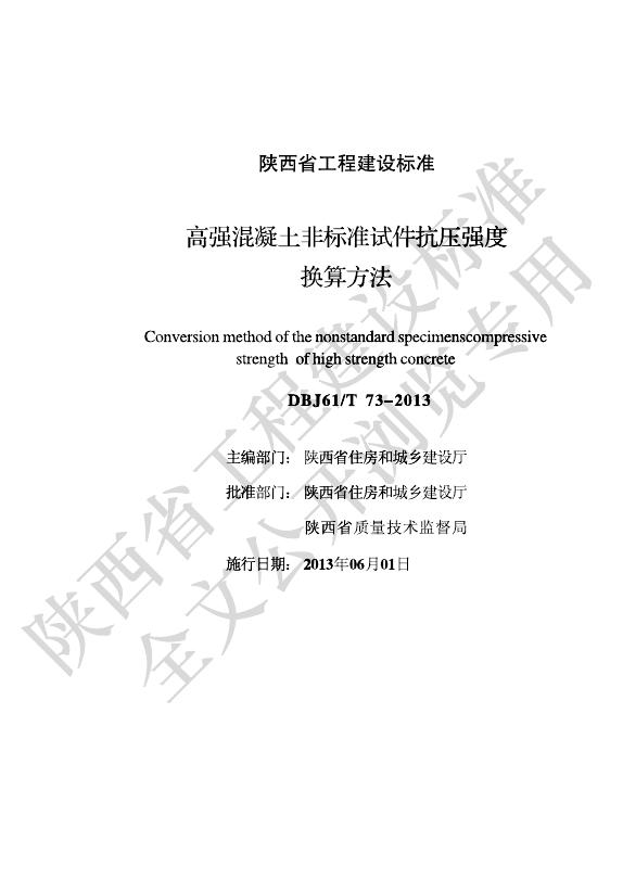 DBJ61/T 73-2012 高强混凝土非标准试件抗压强度换算方法