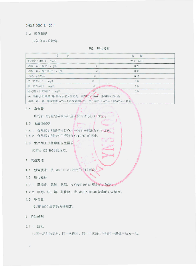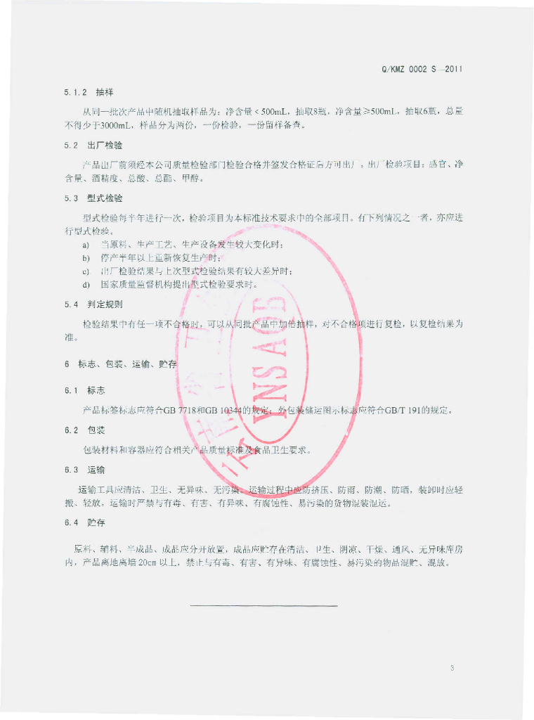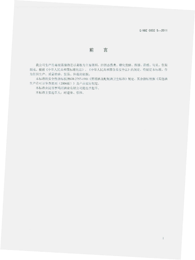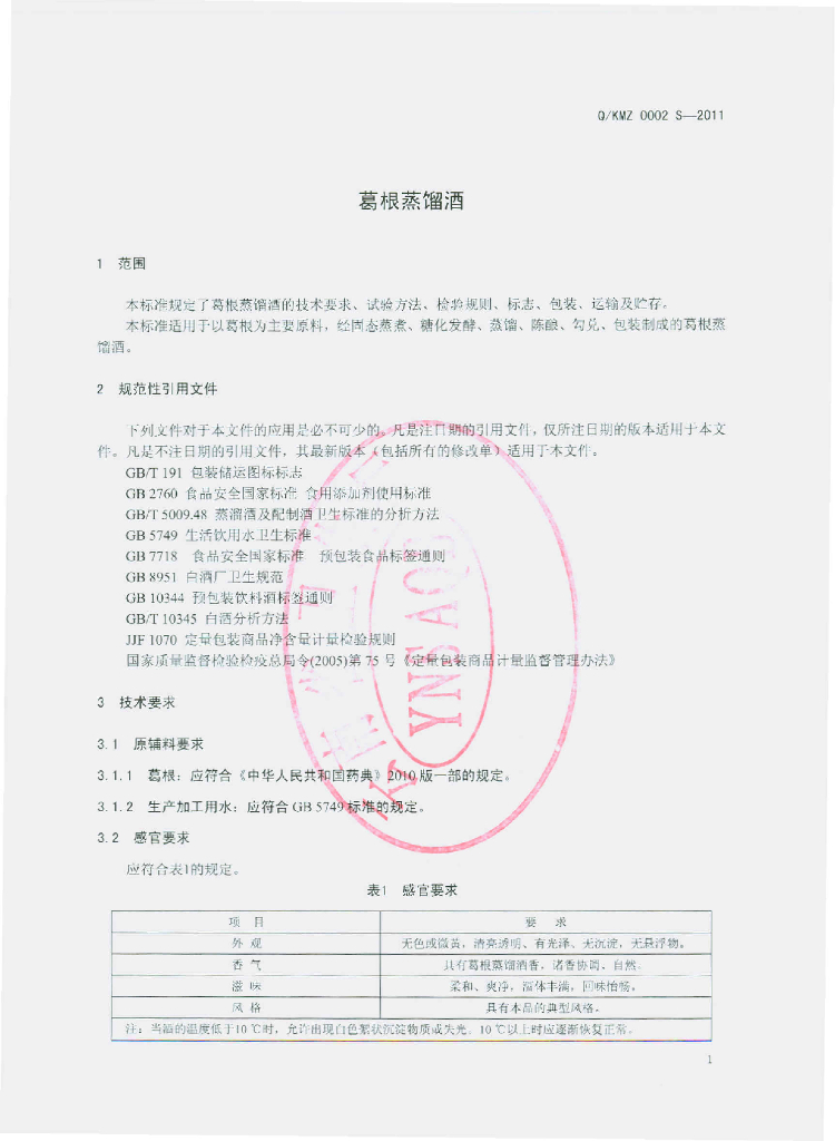 Q/KMZ 0002S-2011 葛根蒸馏酒