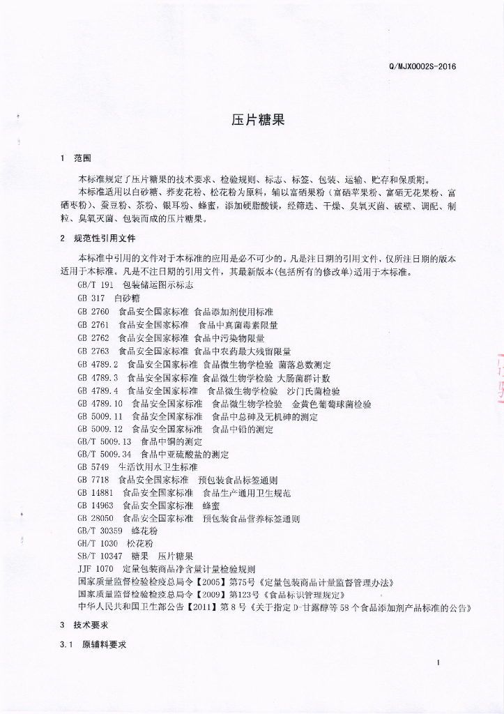 Q/MJX 0002S-2016 绵阳市佳禾鑫华神科技有限公司 压片糖果