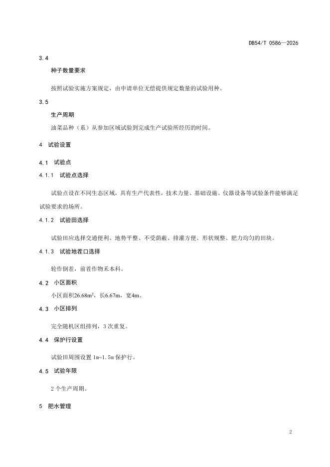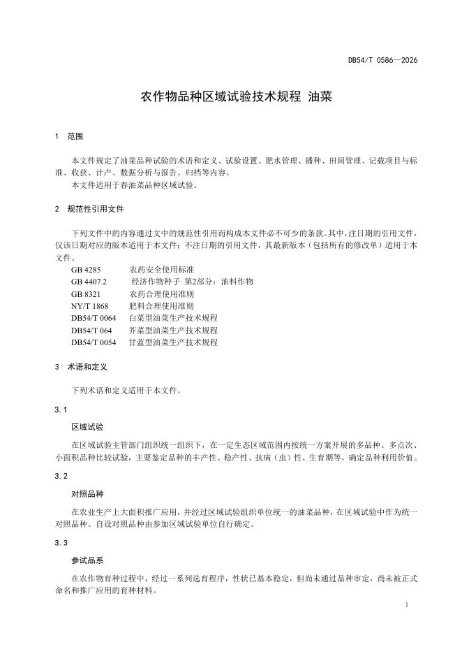 DB54/T 0586-2026 农作物品种区域试验技术规程 油菜