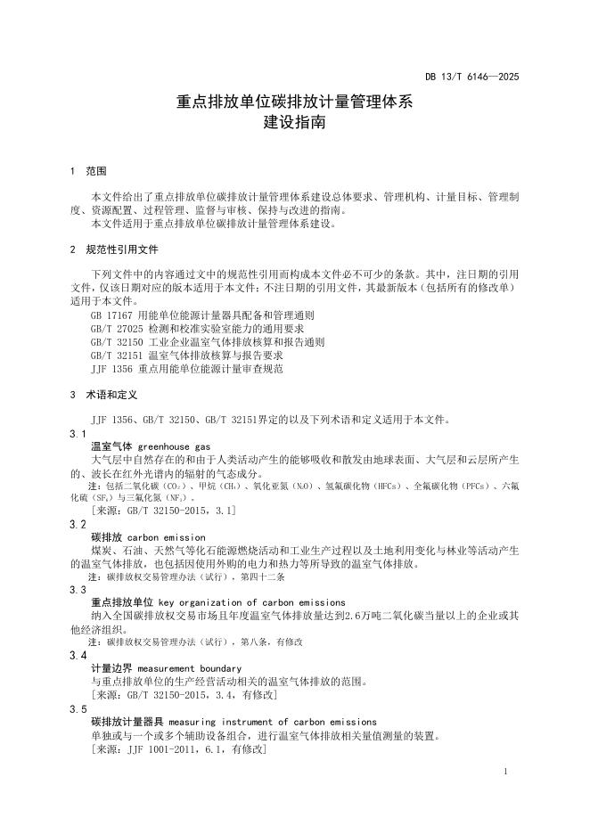 DB13/T 6146-2025 重点排放单位碳排放计量管理体系建设指南