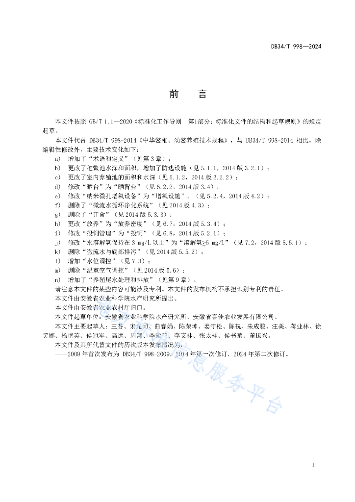 DB34/T 998-2024 中华鳖稚、幼鳖养殖技术规程
