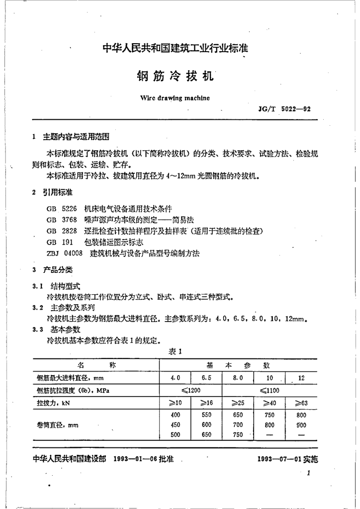 JG/T 5022-1992 钢筋冷拔机