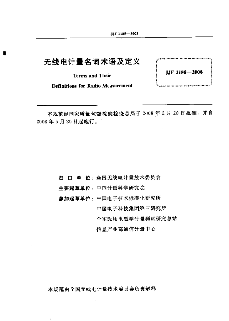 - 主管部门:中国计量科学研究院、中国电子技术标准化研究所、中国电子科技集团第三研究所、全军医用电磁学计量测试研究总站、信息产业部通信计量中心