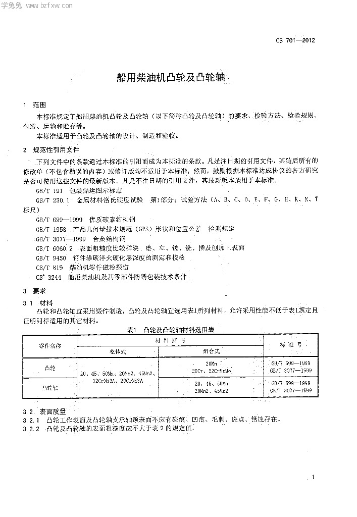 CB 701-2012 船用柴油机凸轮及凸轮轴