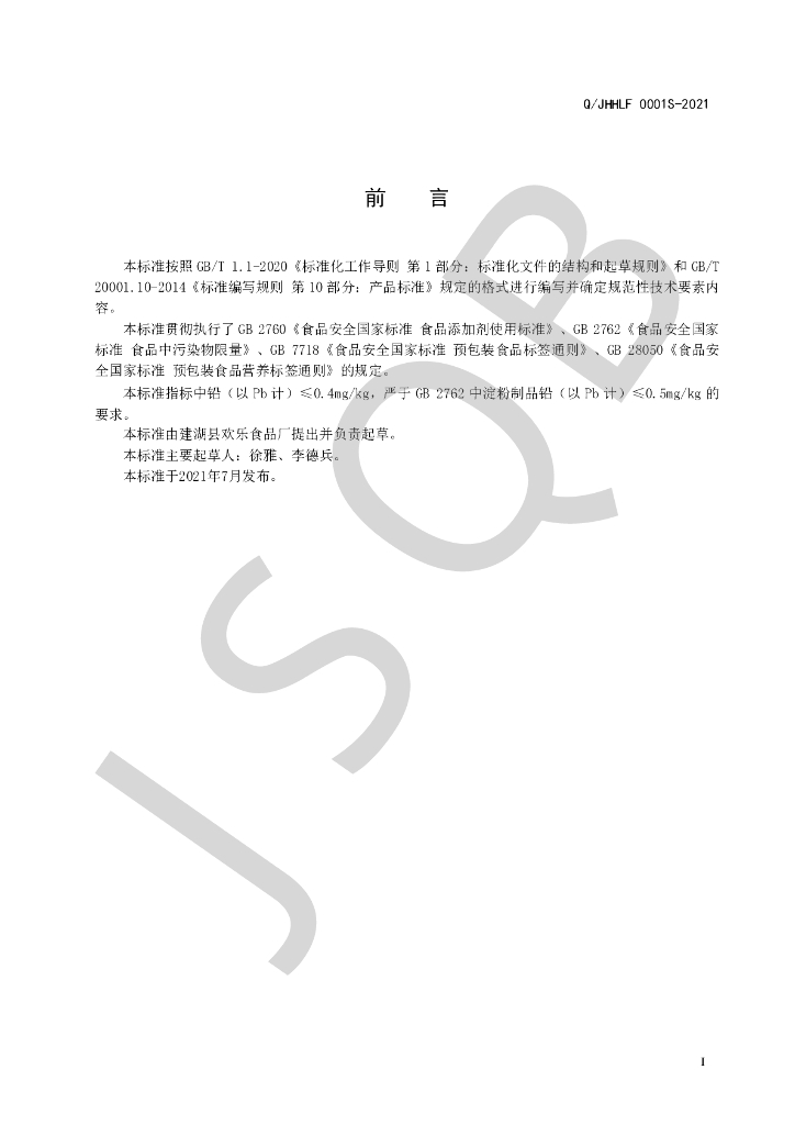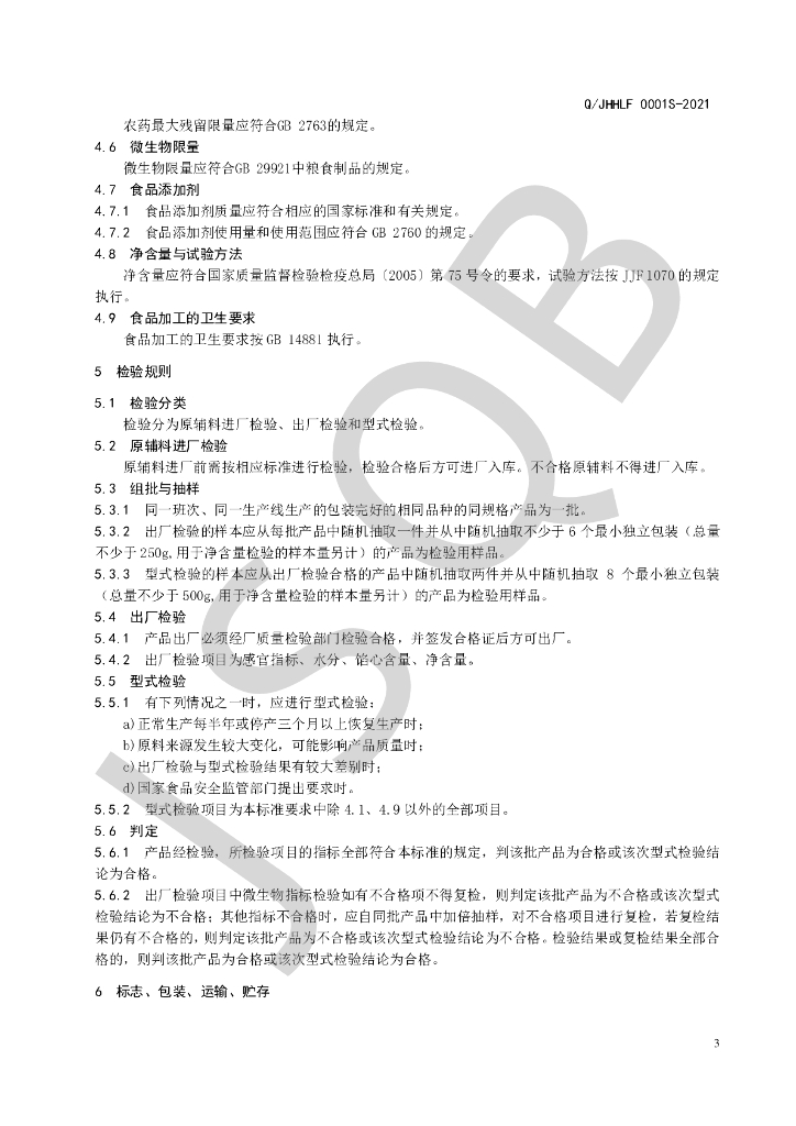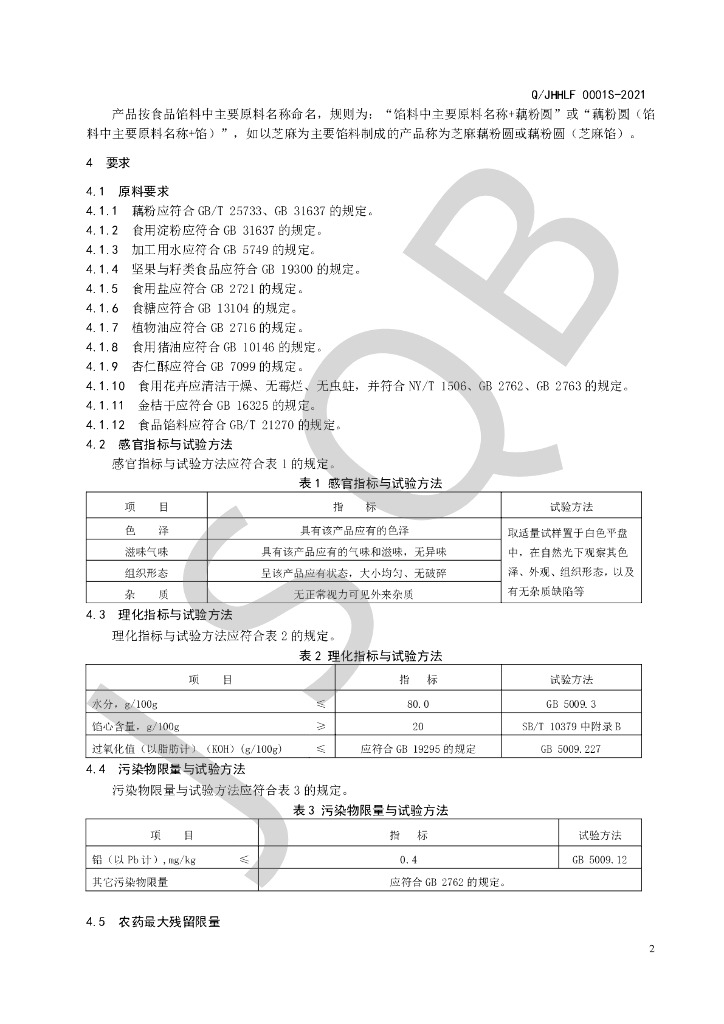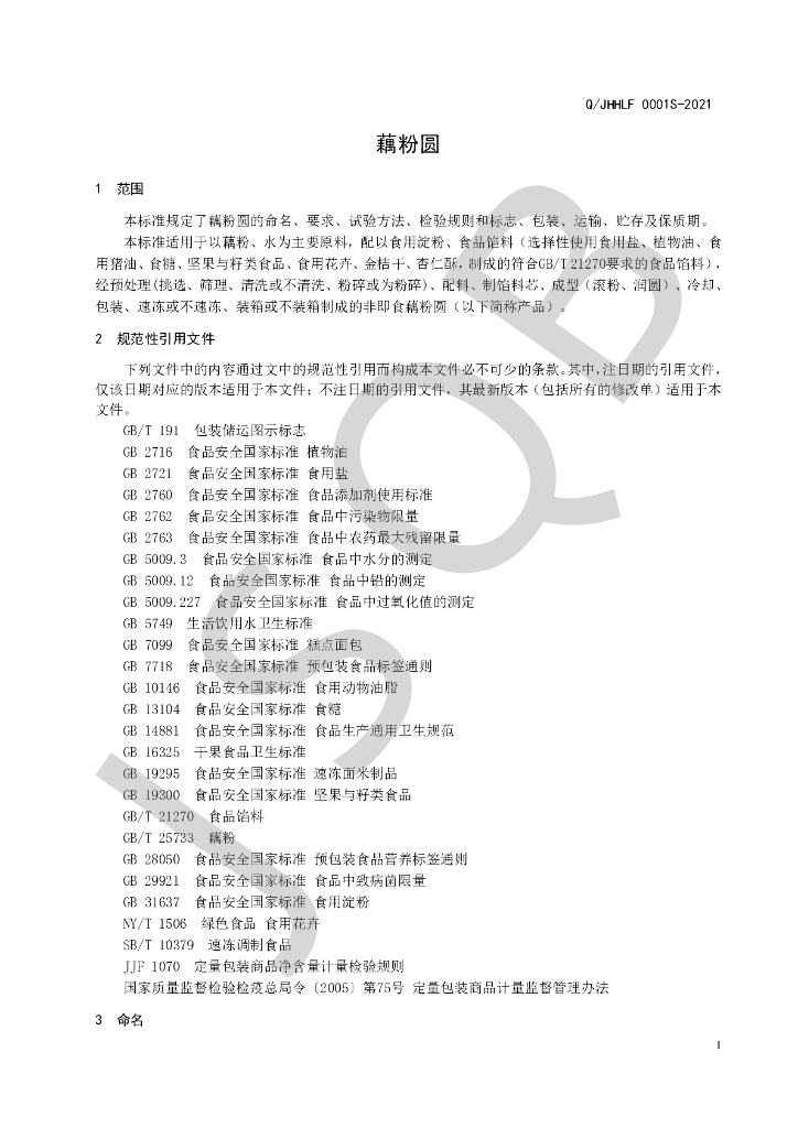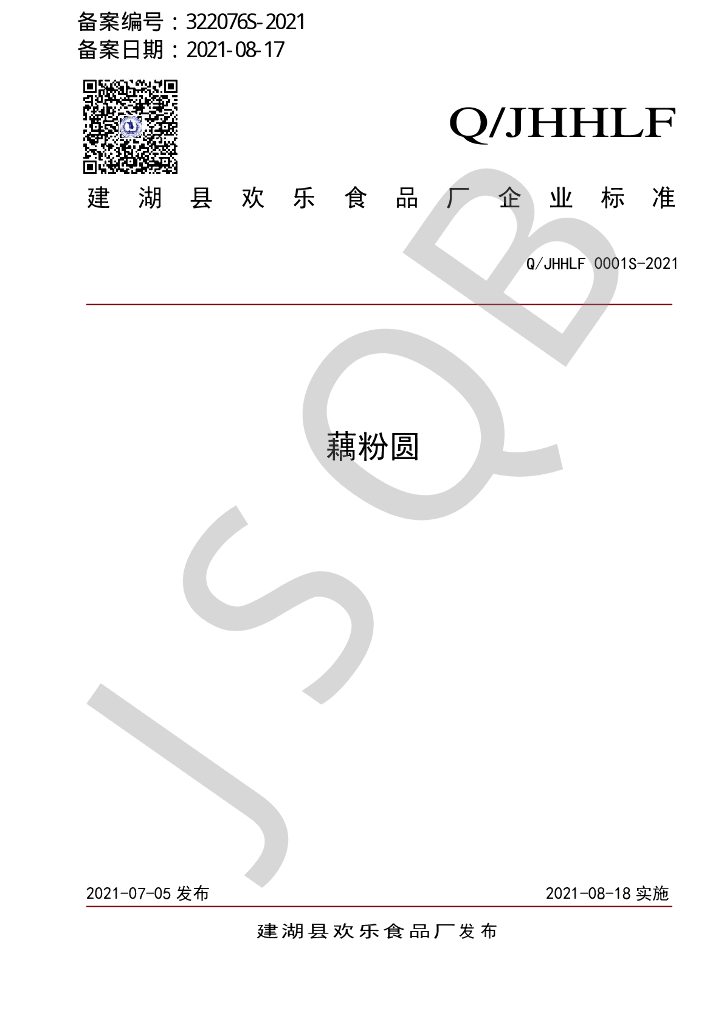 Q/JHHLF 0001S-2021 藕粉圆