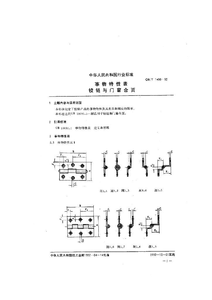 QB/T 1496-1992 事物特性表铵链与门窗合页