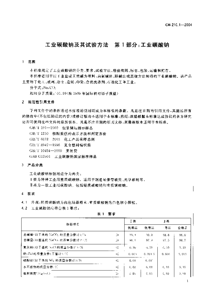 GB/T 210.1-2004 工业碳酸钠及其试验方法