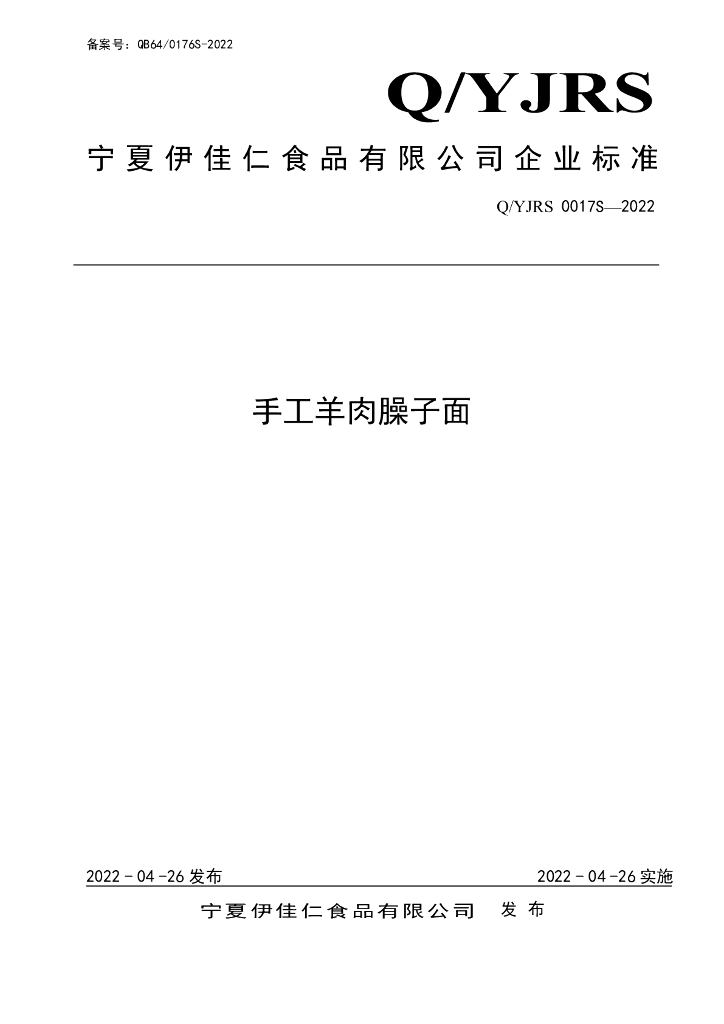 Q/YJRS 0017S-2022 手工羊肉臊子面