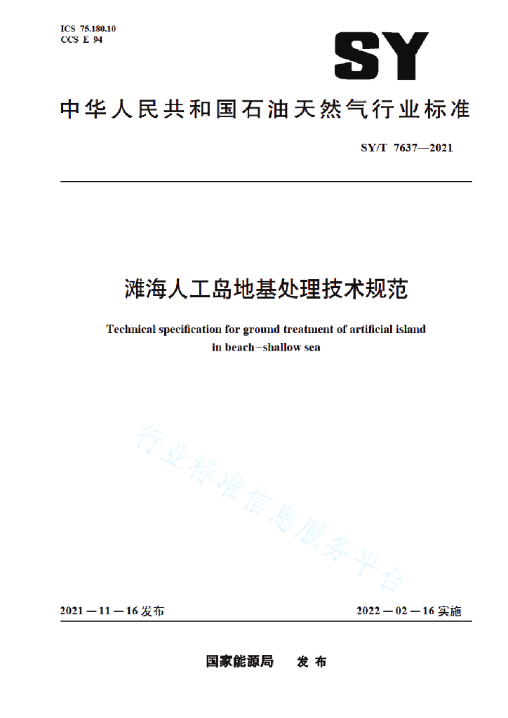 SYT 7637-2021 滩海人工岛地基处理技术规范