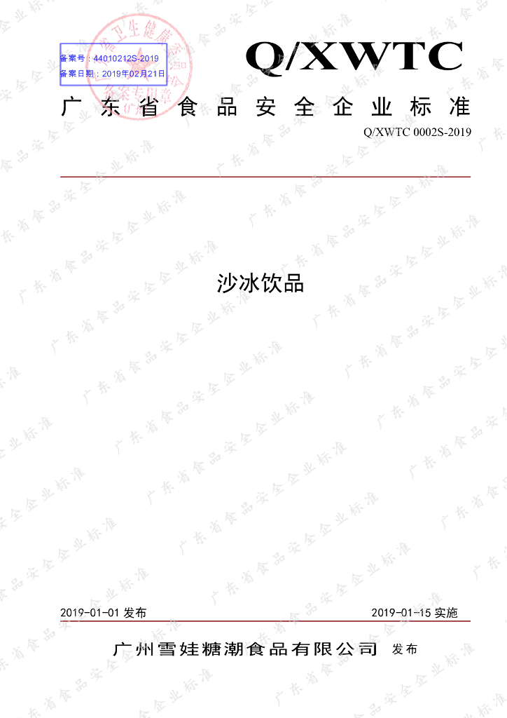 Q/XWTC 0002S-2019 沙冰饮品