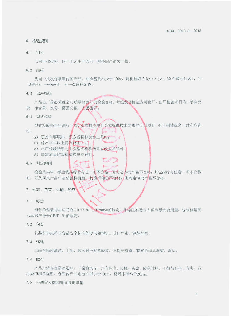 Q/BCL 0013S-2012 蛹虫草玛咖粉