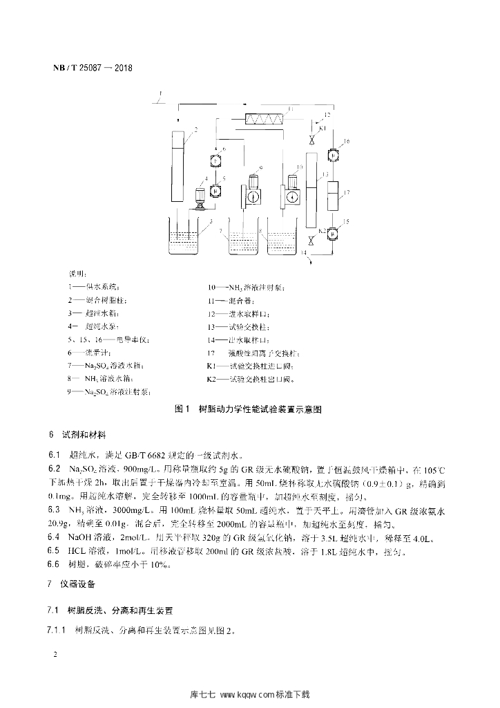 NB/T 25087-2018 核电厂水处理用离子交换树脂动力学性能试验方法