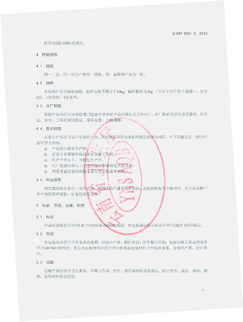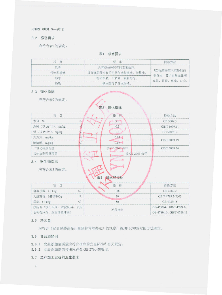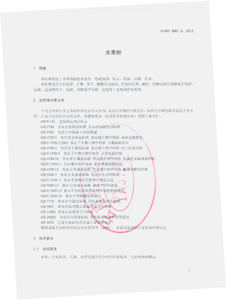 Q/KRY 0001S-2012 水果粉