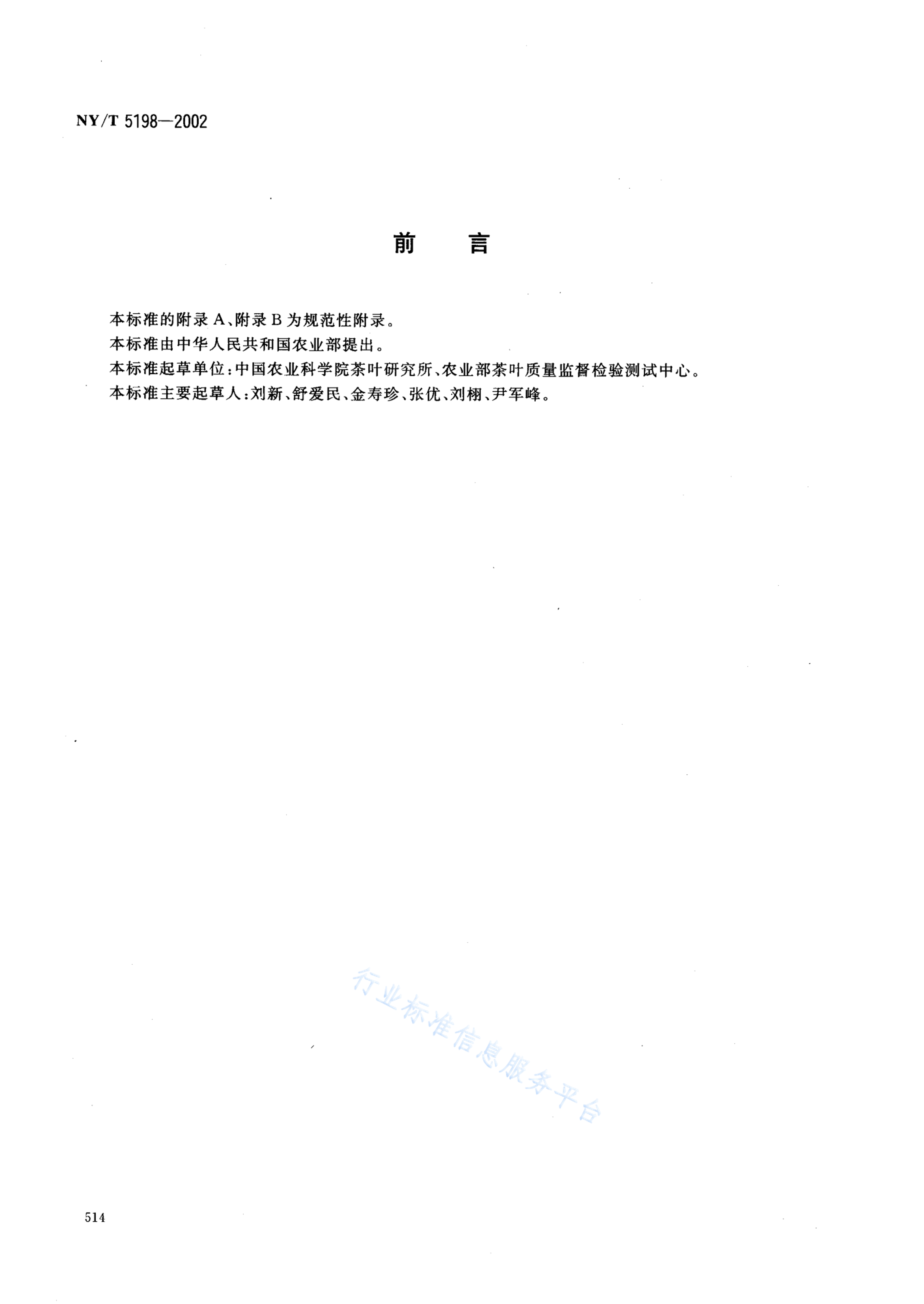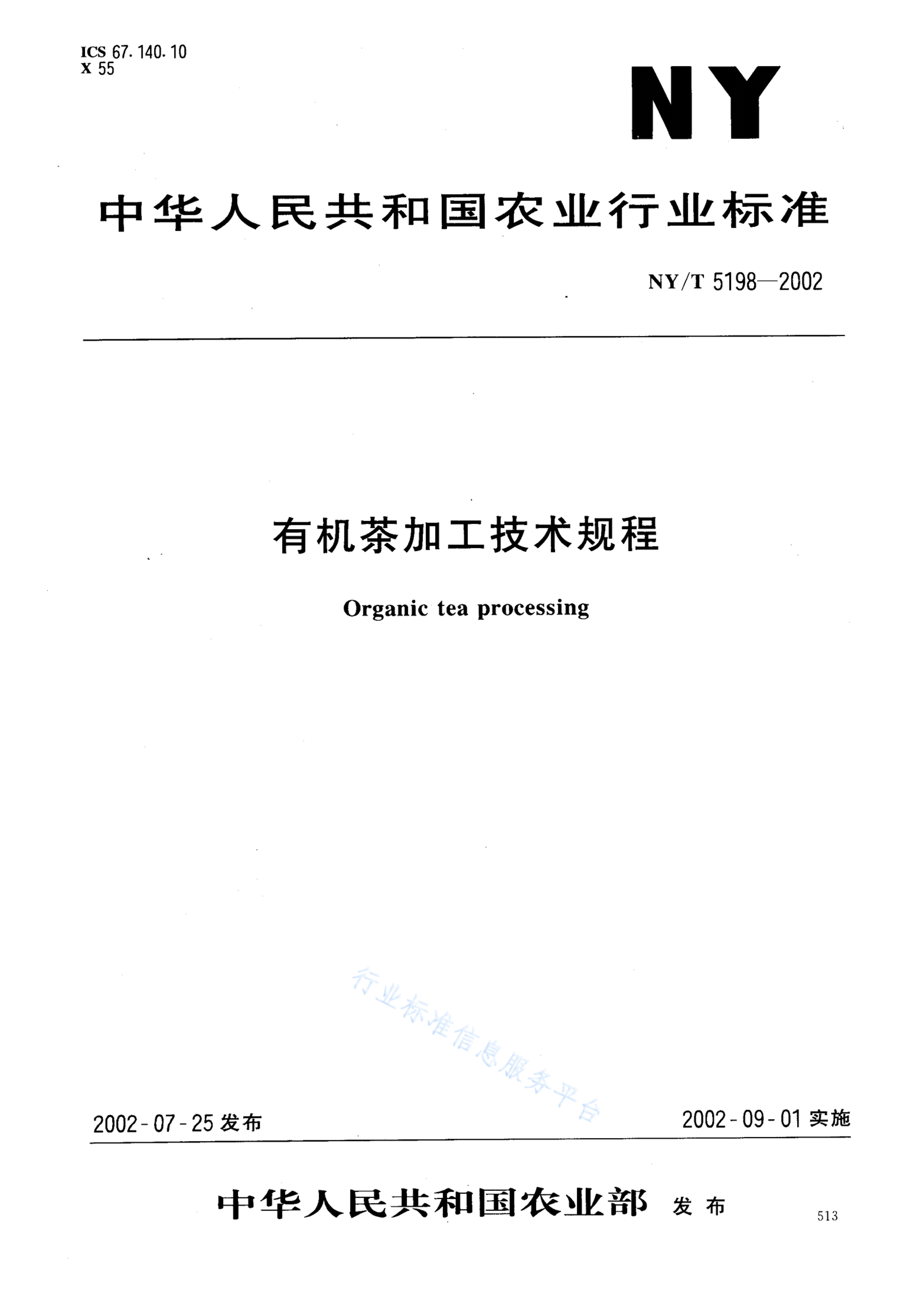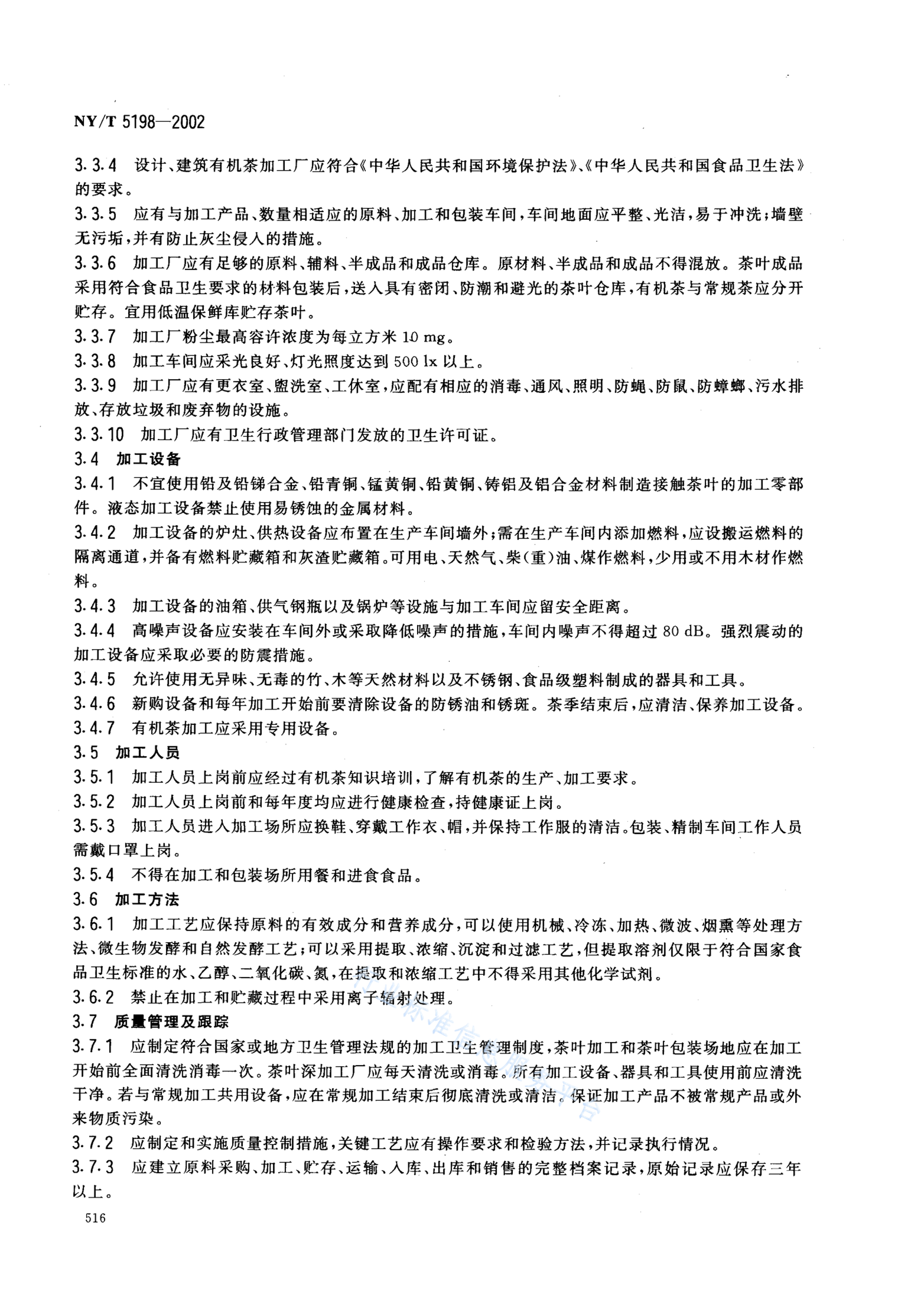 NY/T 5198-2002 有机茶加工技术规程