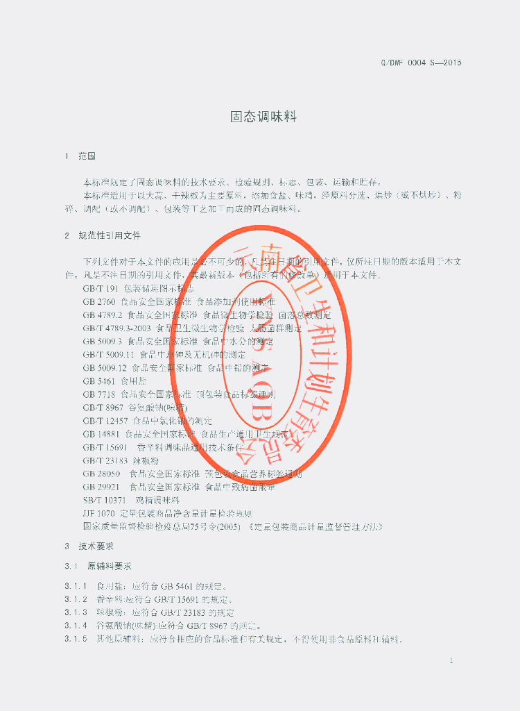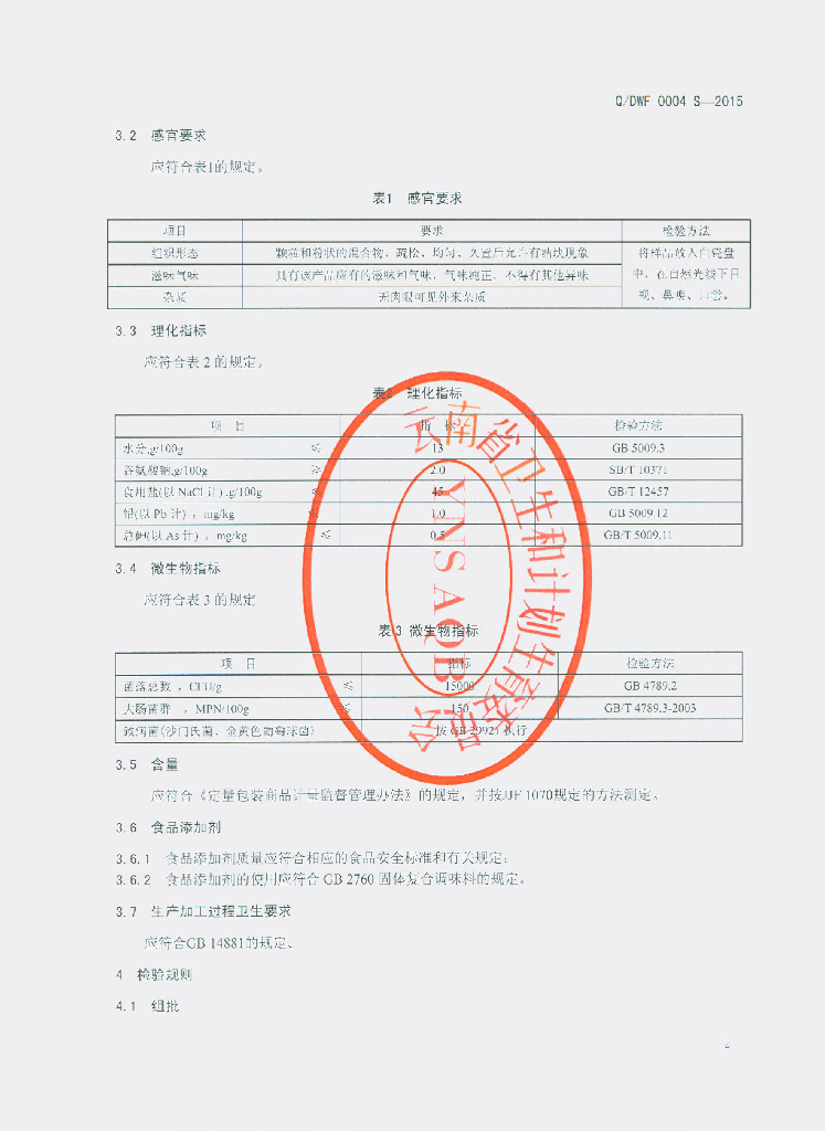 Q/DWF 0004S-2015 孟连傣王府生物开发有限公司 固态调味料