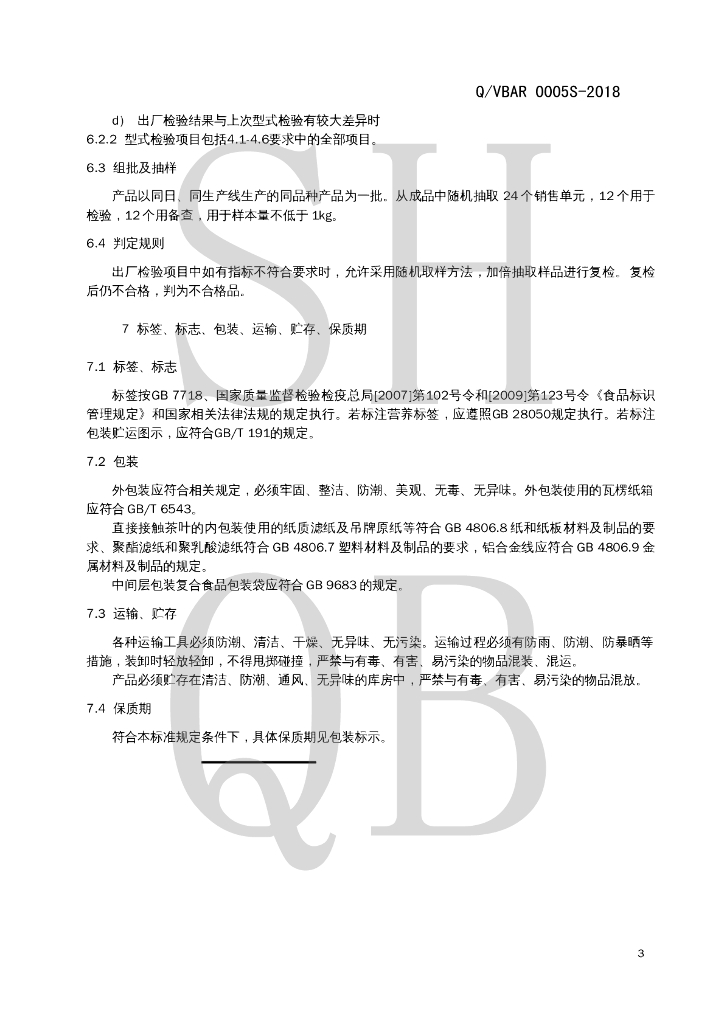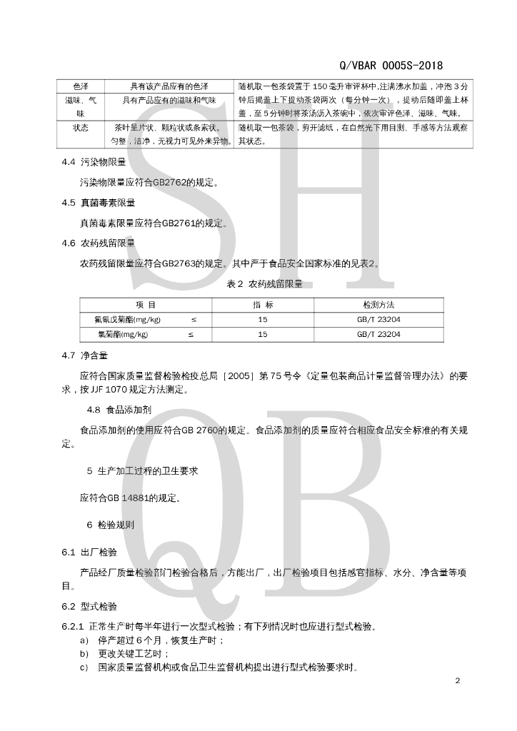 Q/VBAR 0005S-2018 袋泡茶