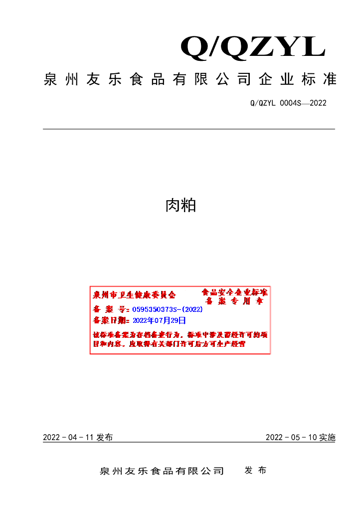 Q/QZYL 0004S-2022 肉粕