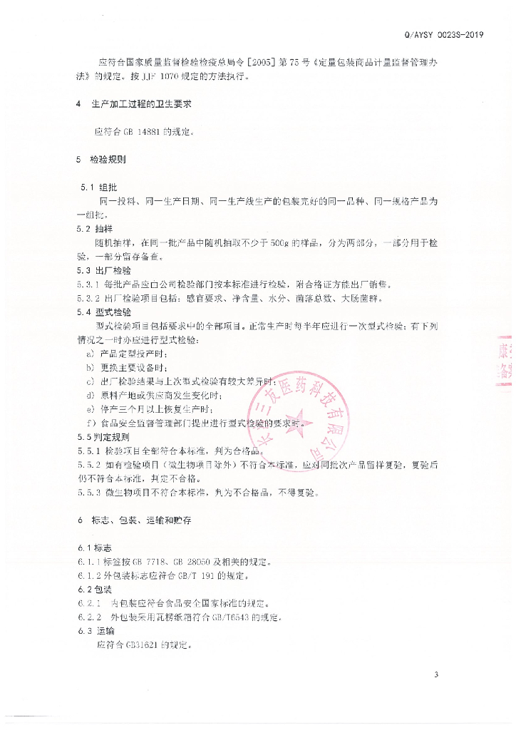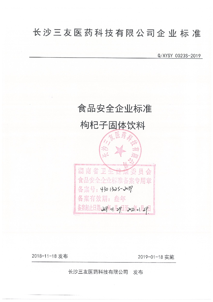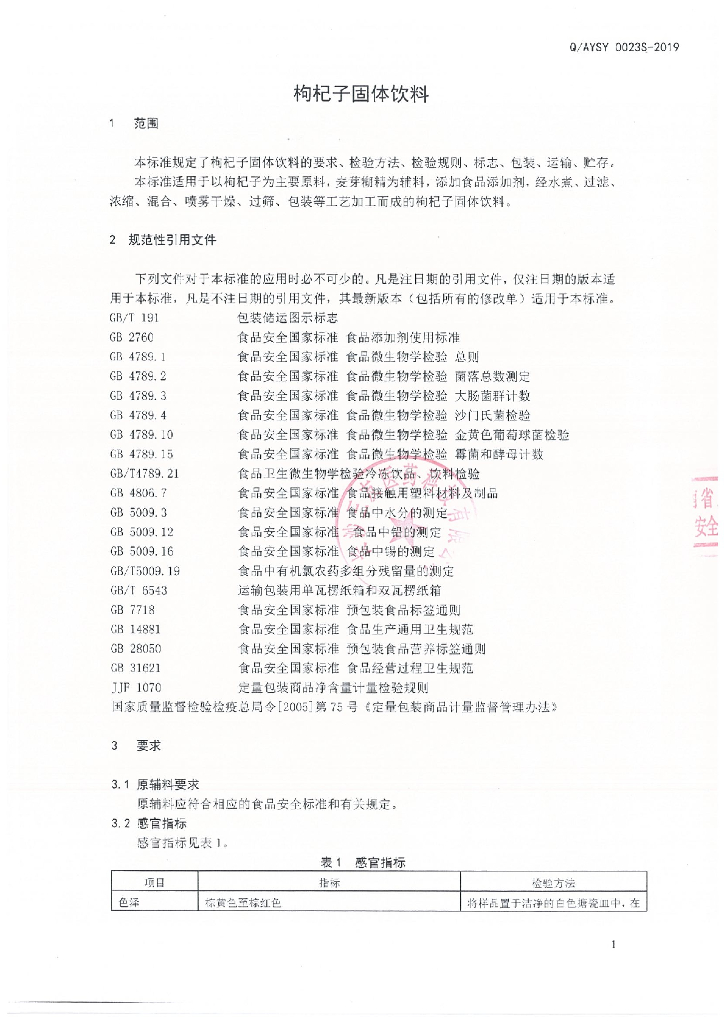 Q/AYSY 0023S-2019 枸杞子固体饮料