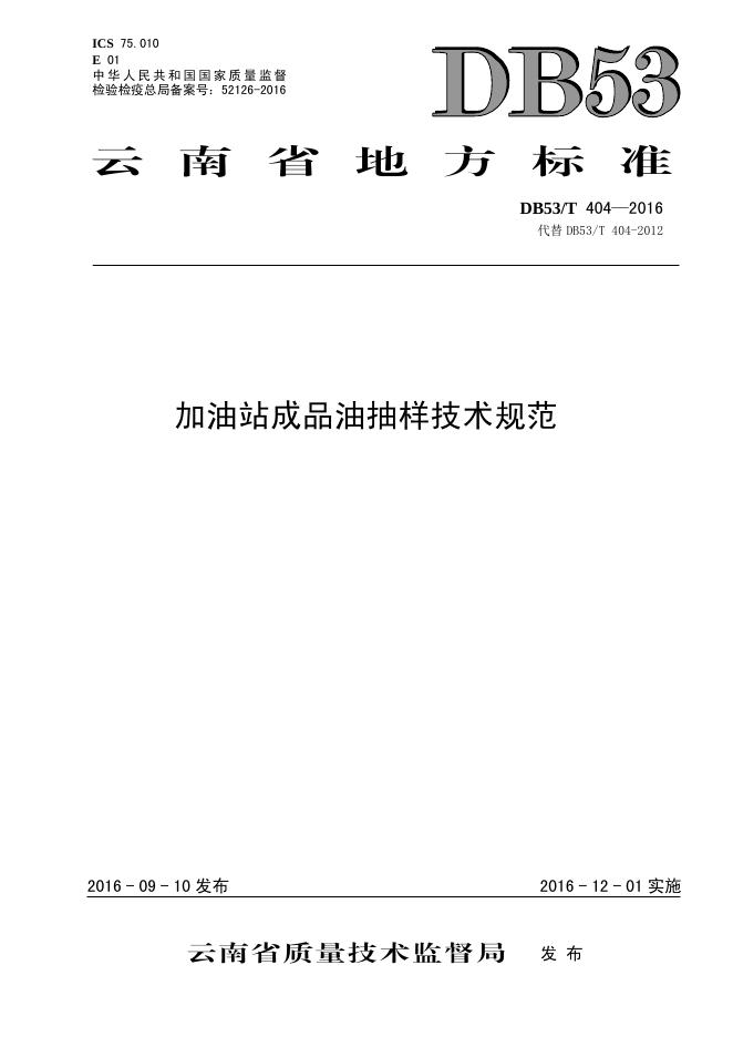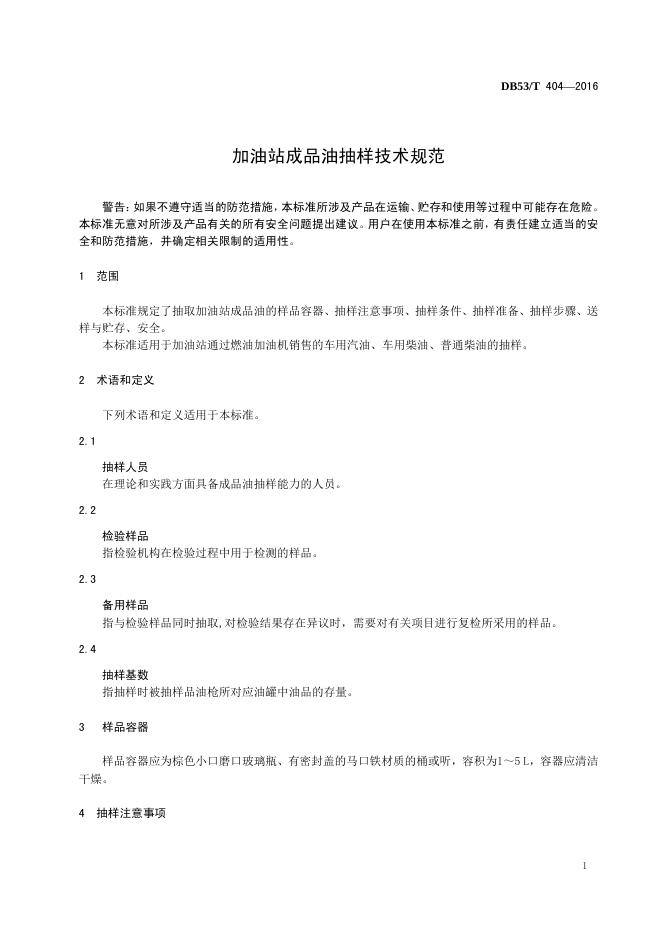 DB53/T 404-2016 加油站成品油抽样技术规范