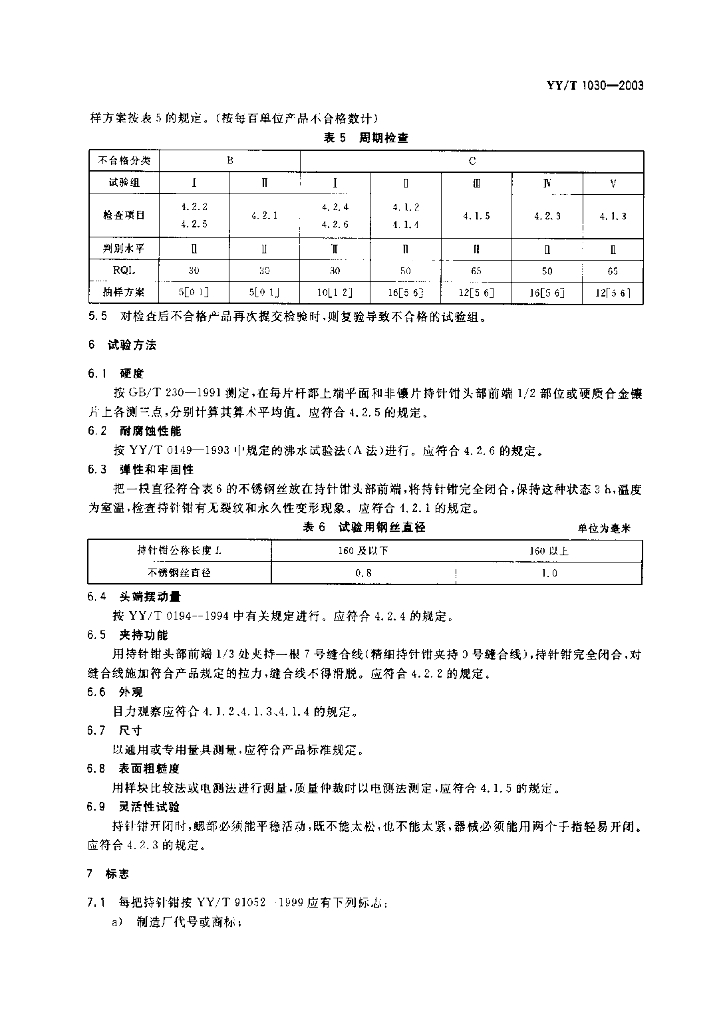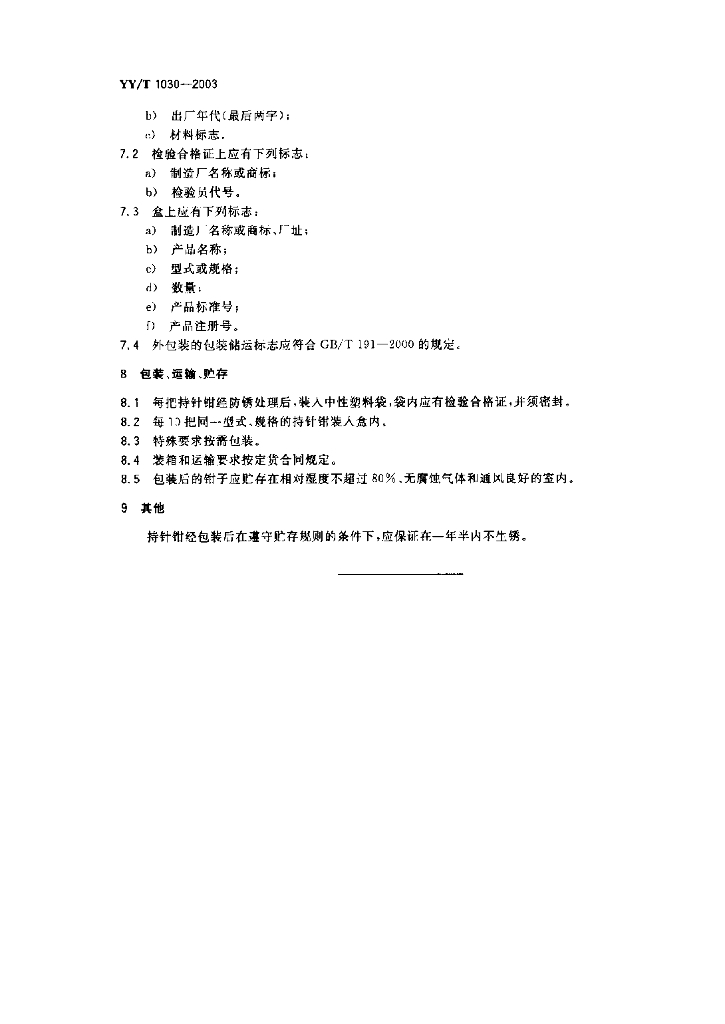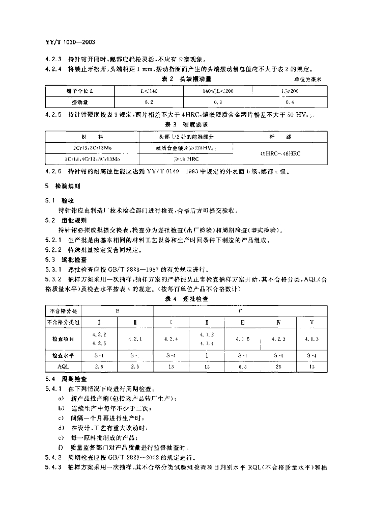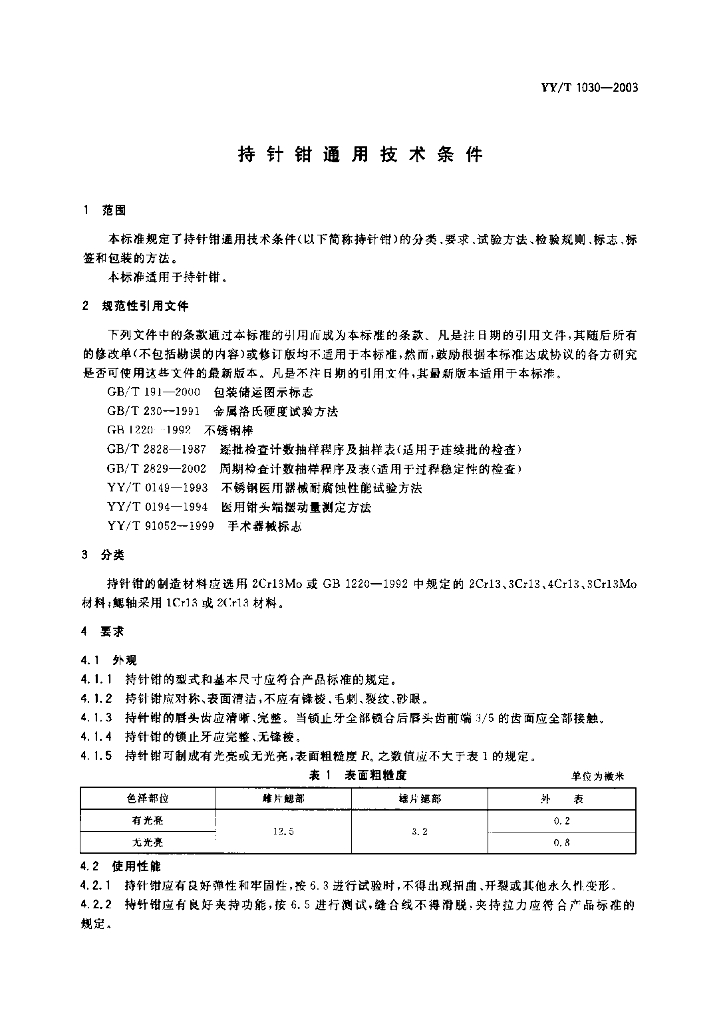 YY/T 1030-2003 持针钳通用技术条件