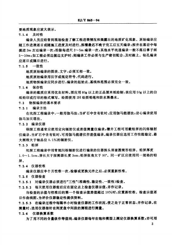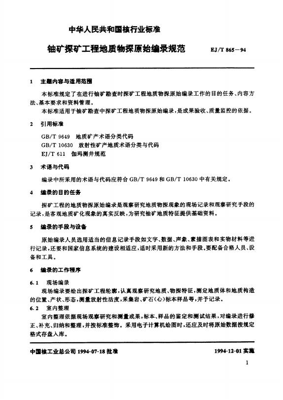 EJ/T 864-1994 铀矿探矿工程地质物探原始编录规范