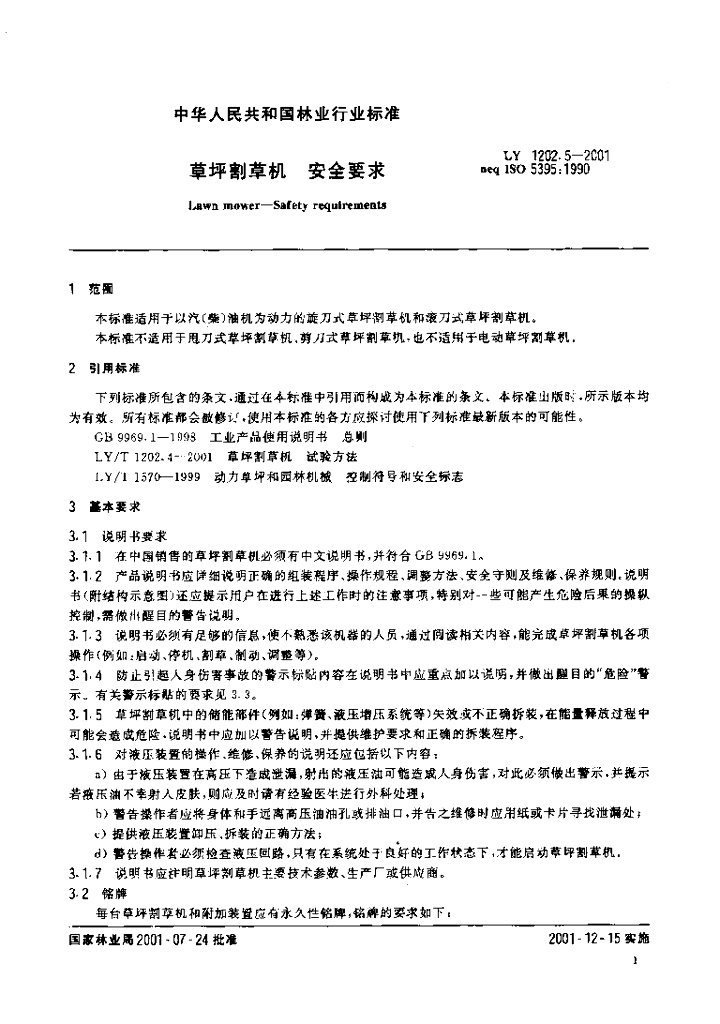 LY/T 1202.5-2001 草坪割草机 安全要求