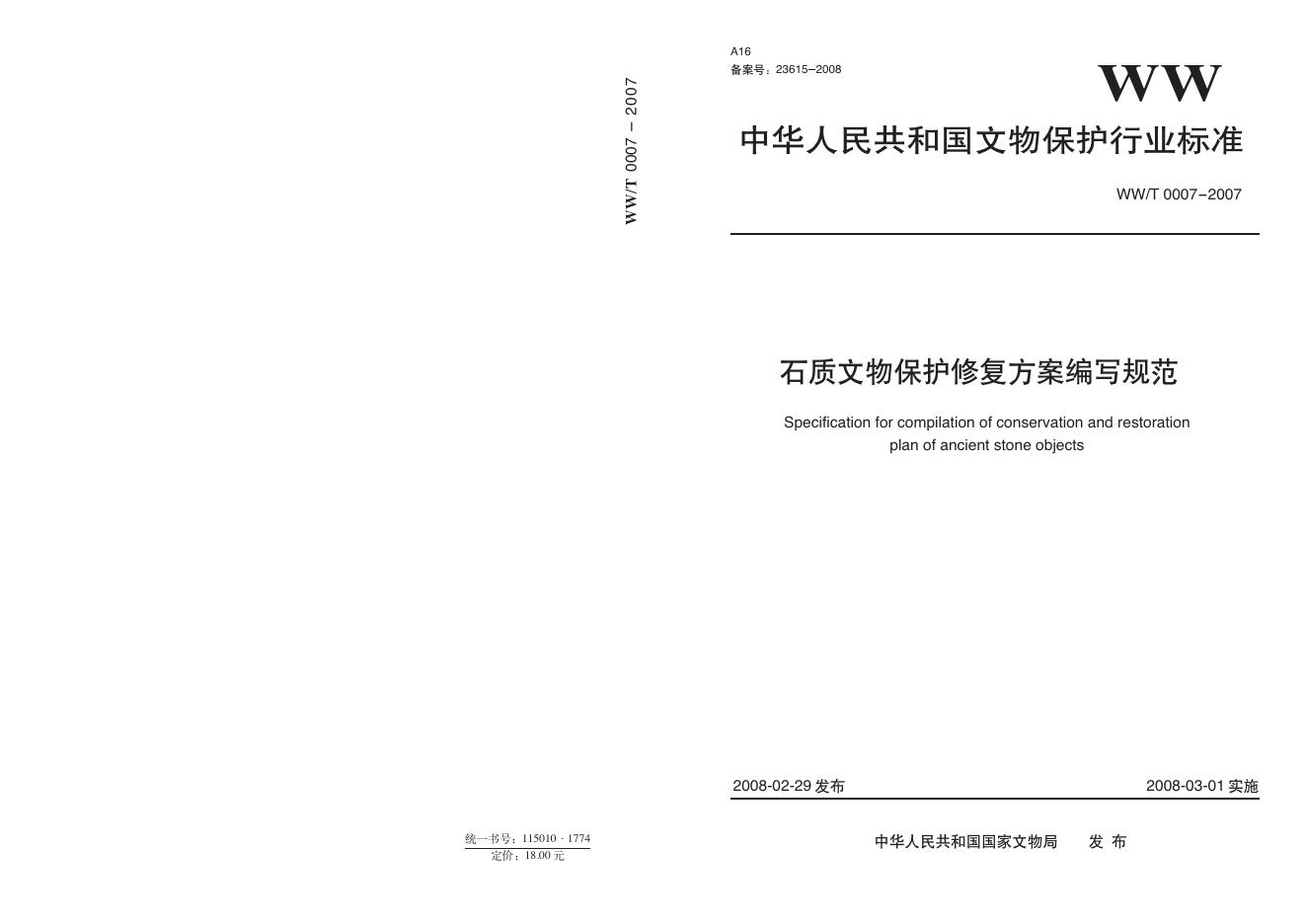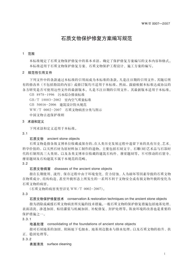 WW/T 0007-2007 石质文物保护修复方案编写规范