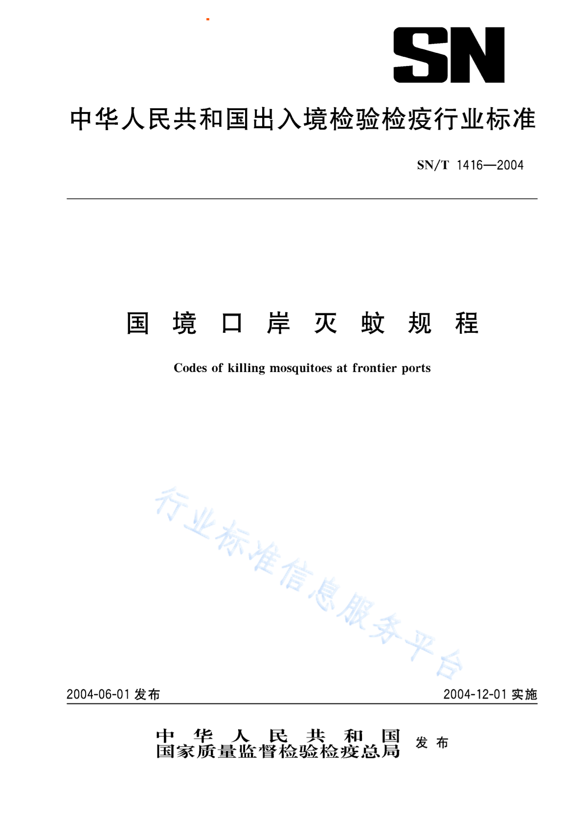 SN/T 1416-2004 国境口岸灭蚊规程