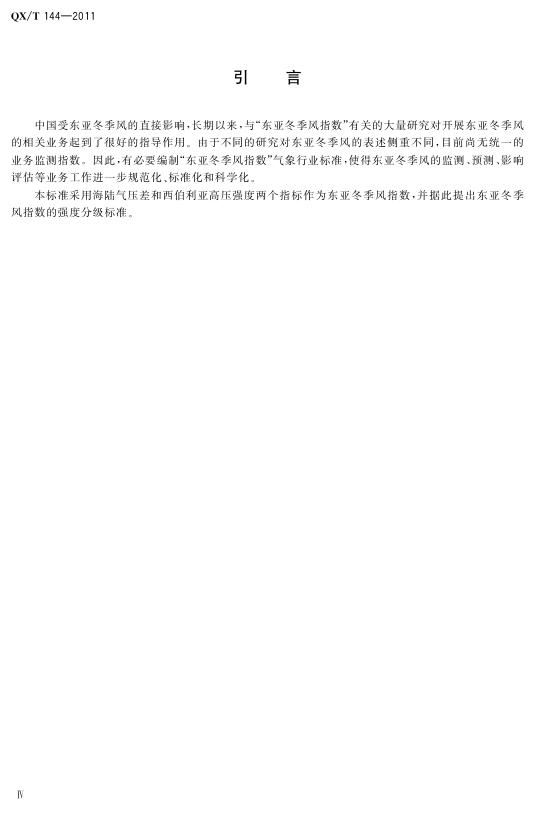 QX/T 144-2011 东亚冬季风指数