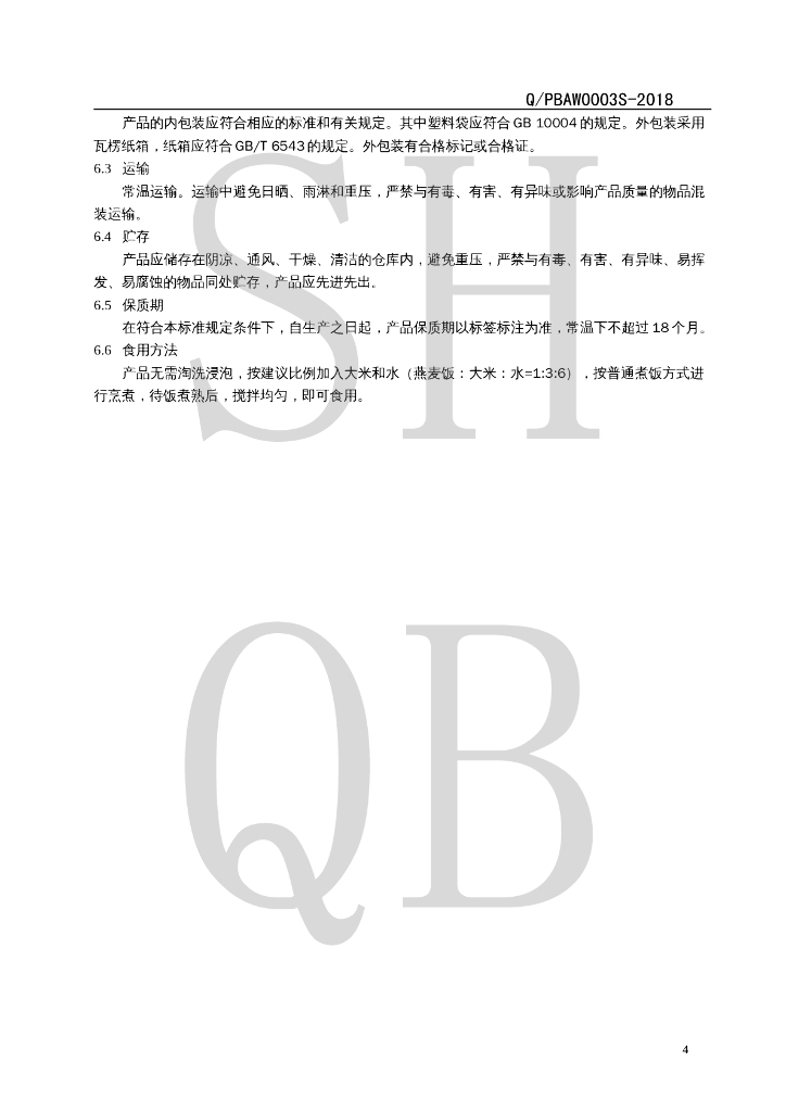 Q/PBAW 0003S-2018 燕麦类谷物制品