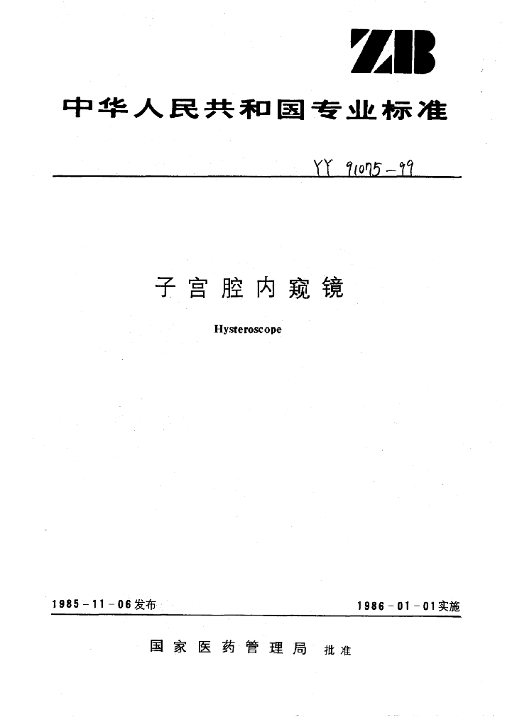 YY 91075-1999 子宫腔内窥镜